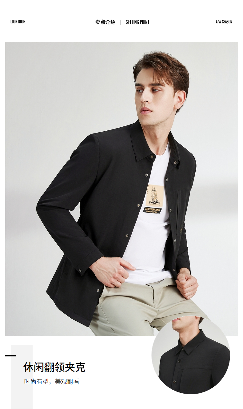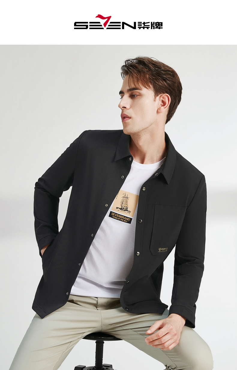 【特价】柒牌男装春秋新款时尚潮流青年长袖翻领夹克休闲百搭工装外套 122K70130