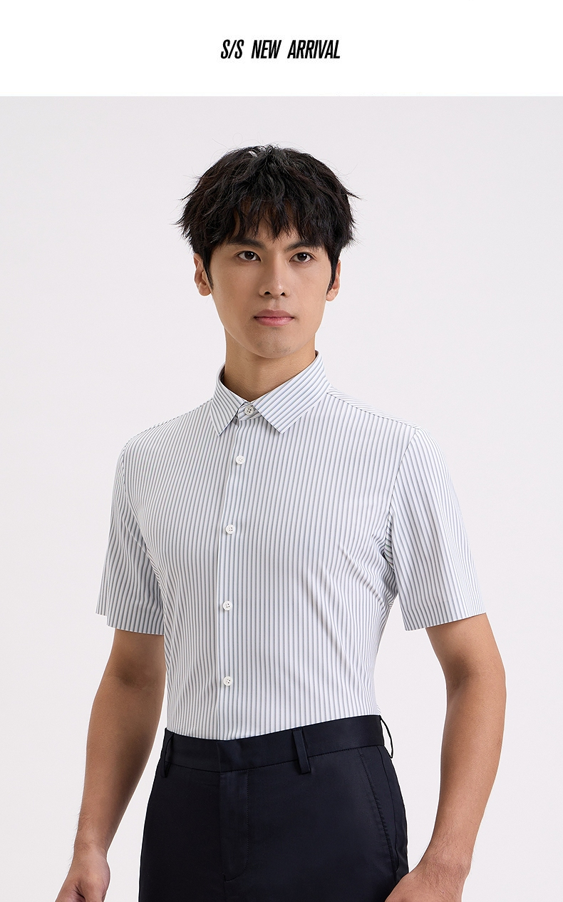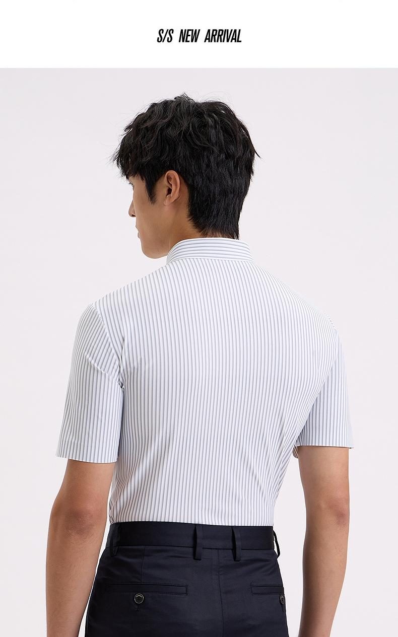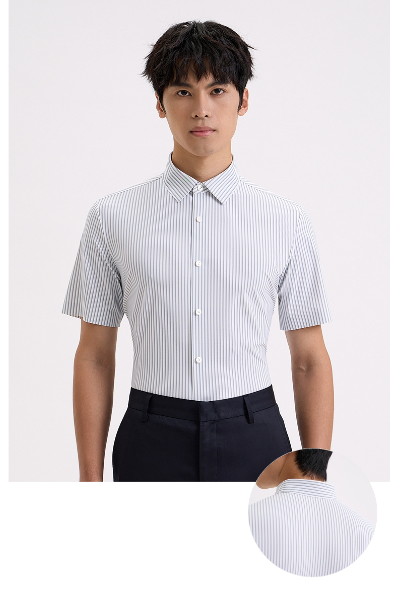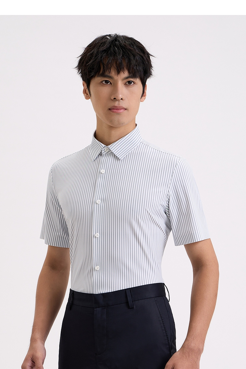 【商场同款】柒牌条纹短袖衬衫男士2024夏季新款商务休闲翻领衬衣726A71350