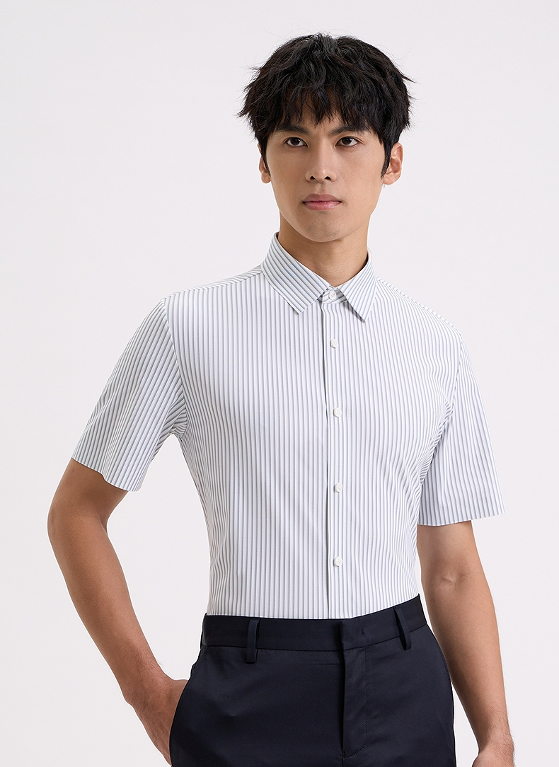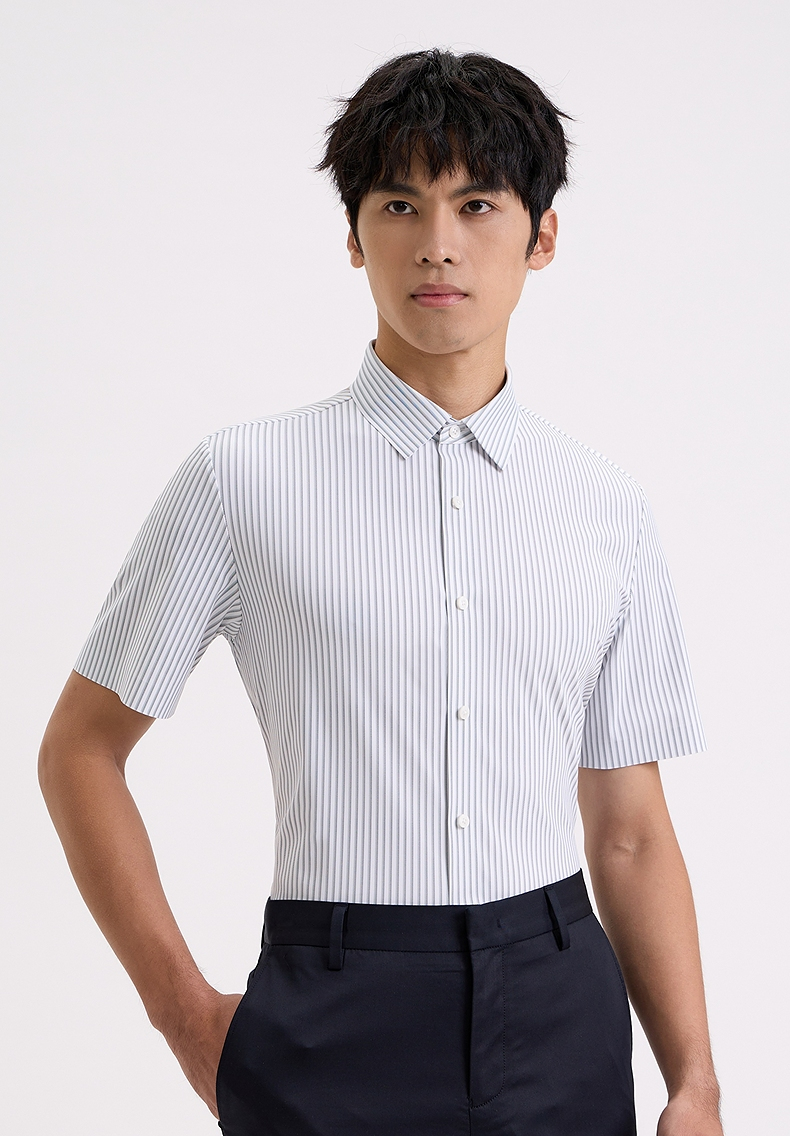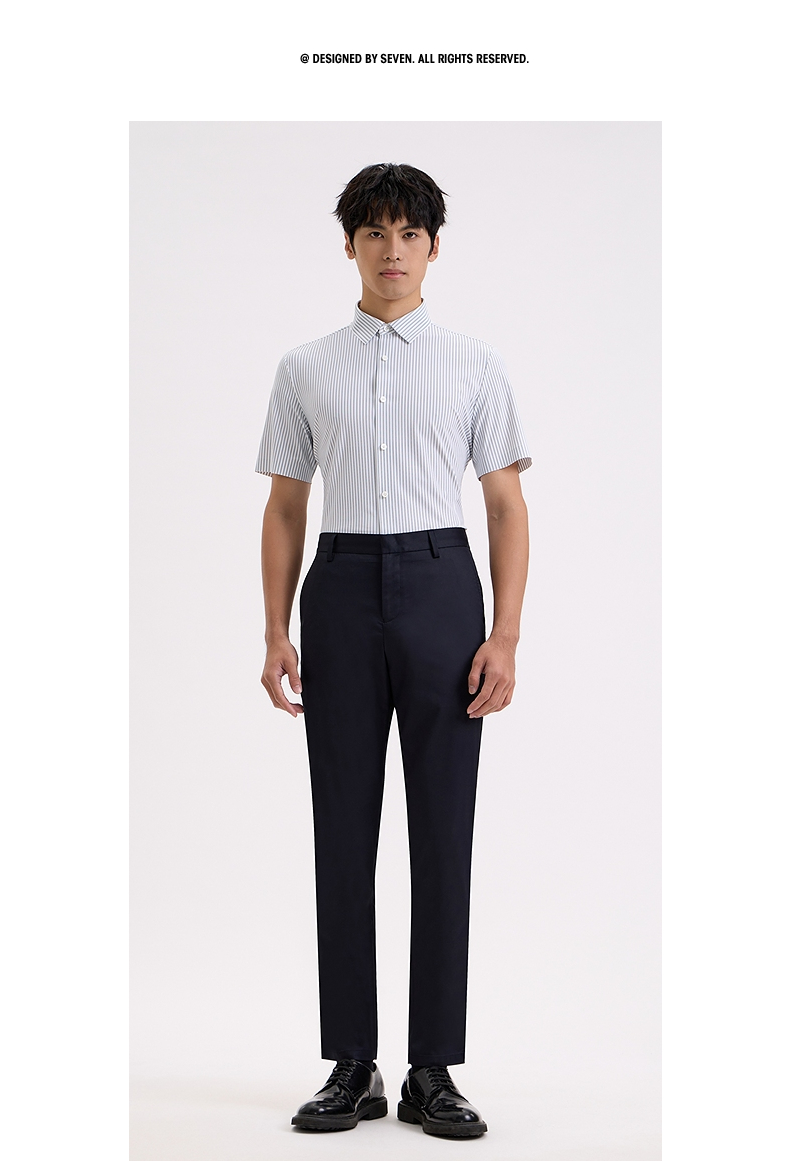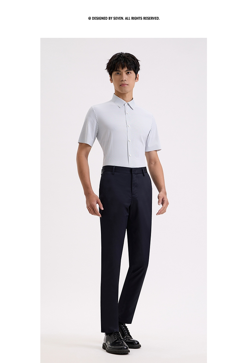 【商场同款】柒牌条纹短袖衬衫男士2024夏季新款商务休闲翻领衬衣726A71350