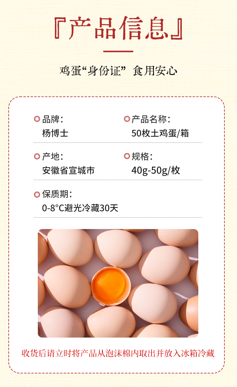 【发出后不支持拦截退货】杨博士 土鸡蛋 40-50g*60