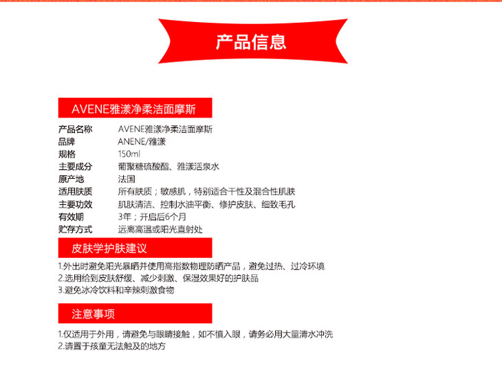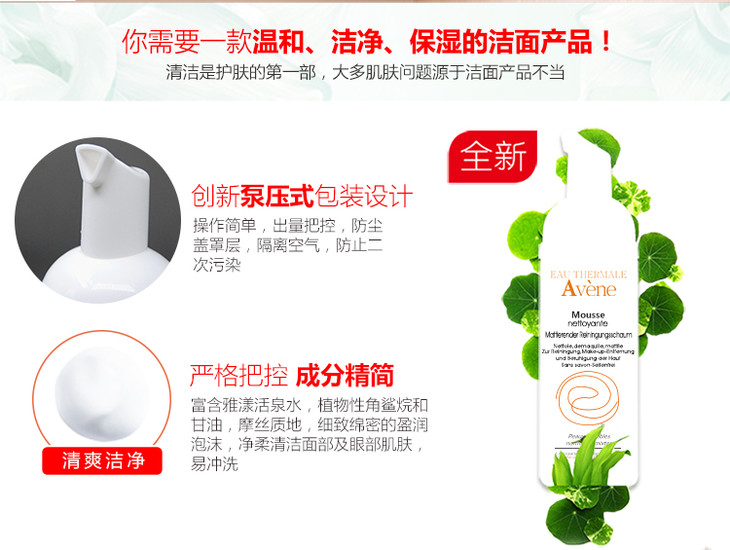 【荷兰直邮】Avene雅漾净柔洁面摩斯150ml