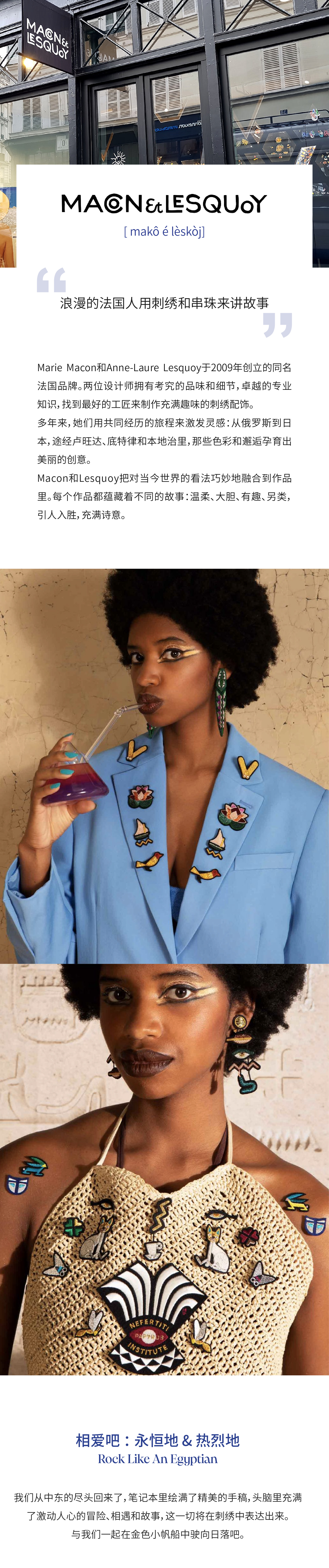 Macon&Lesquoy法国原创设计 轻柔的心 埃及系列 M&L刺绣手工饰品胸针