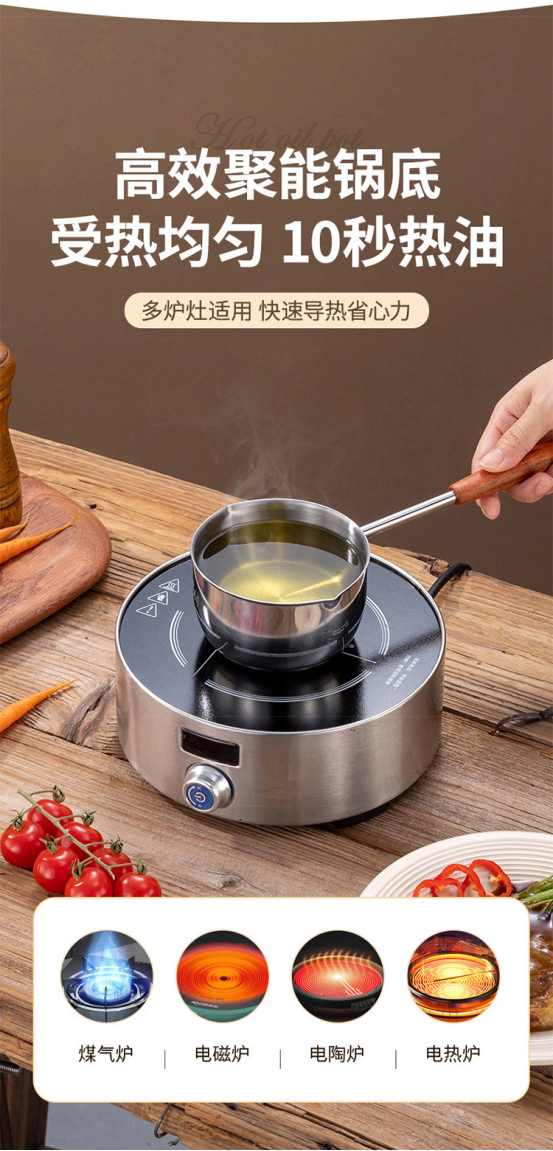 ✔不挑炉具,快速导热放电磁炉上几秒钟油就热了,超方便!