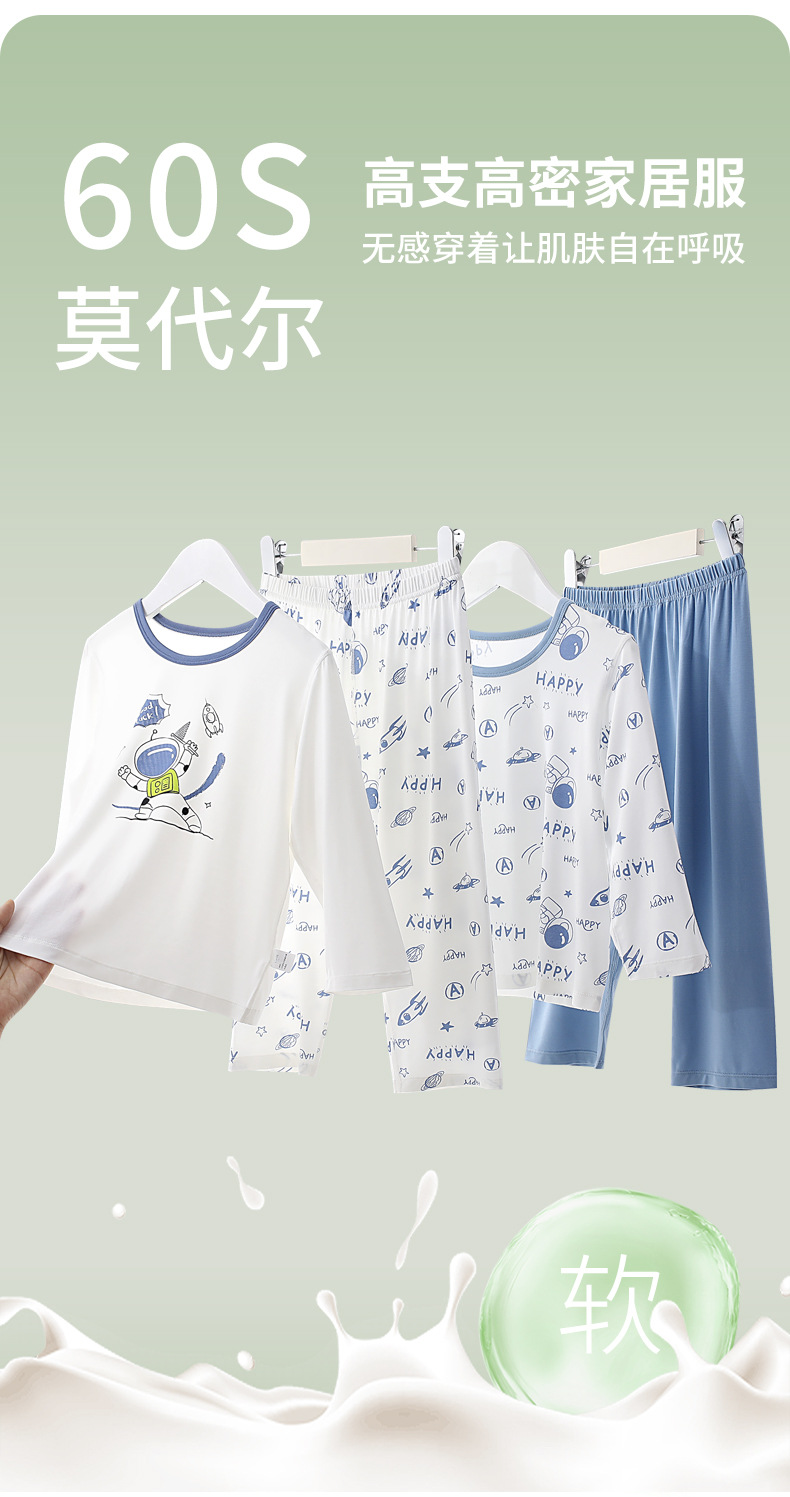 儿童睡衣莫代尔套装春夏薄款睡衣男童睡裤夏季韩版a类家居服儿童