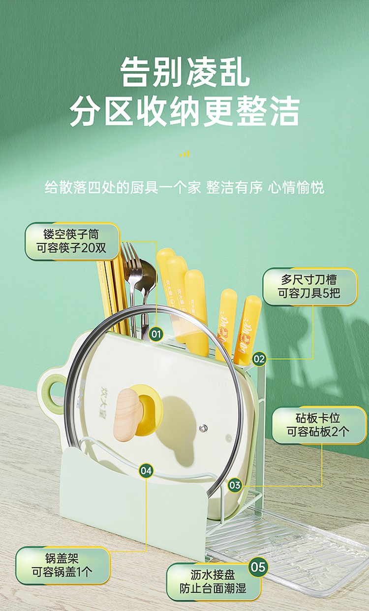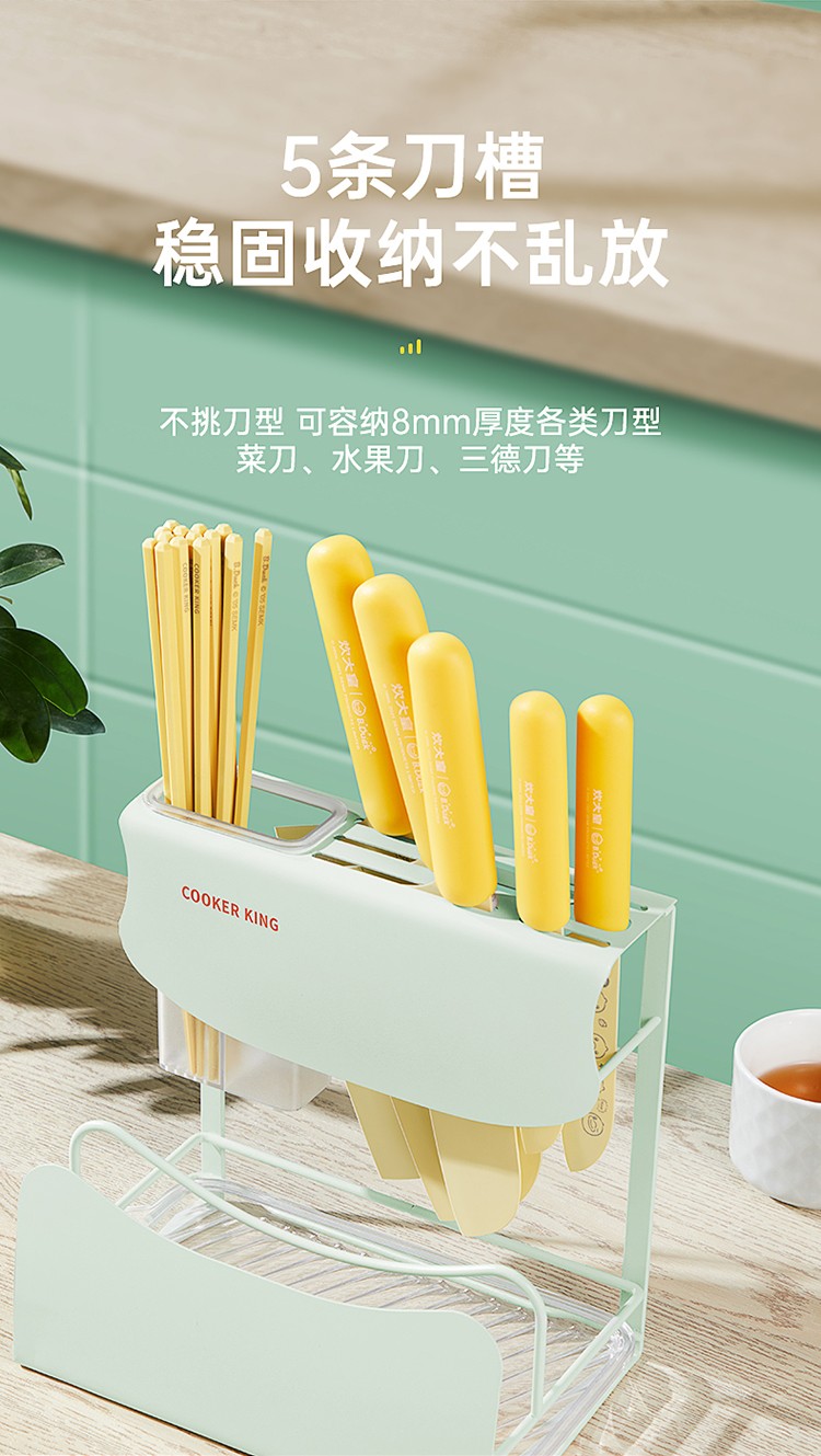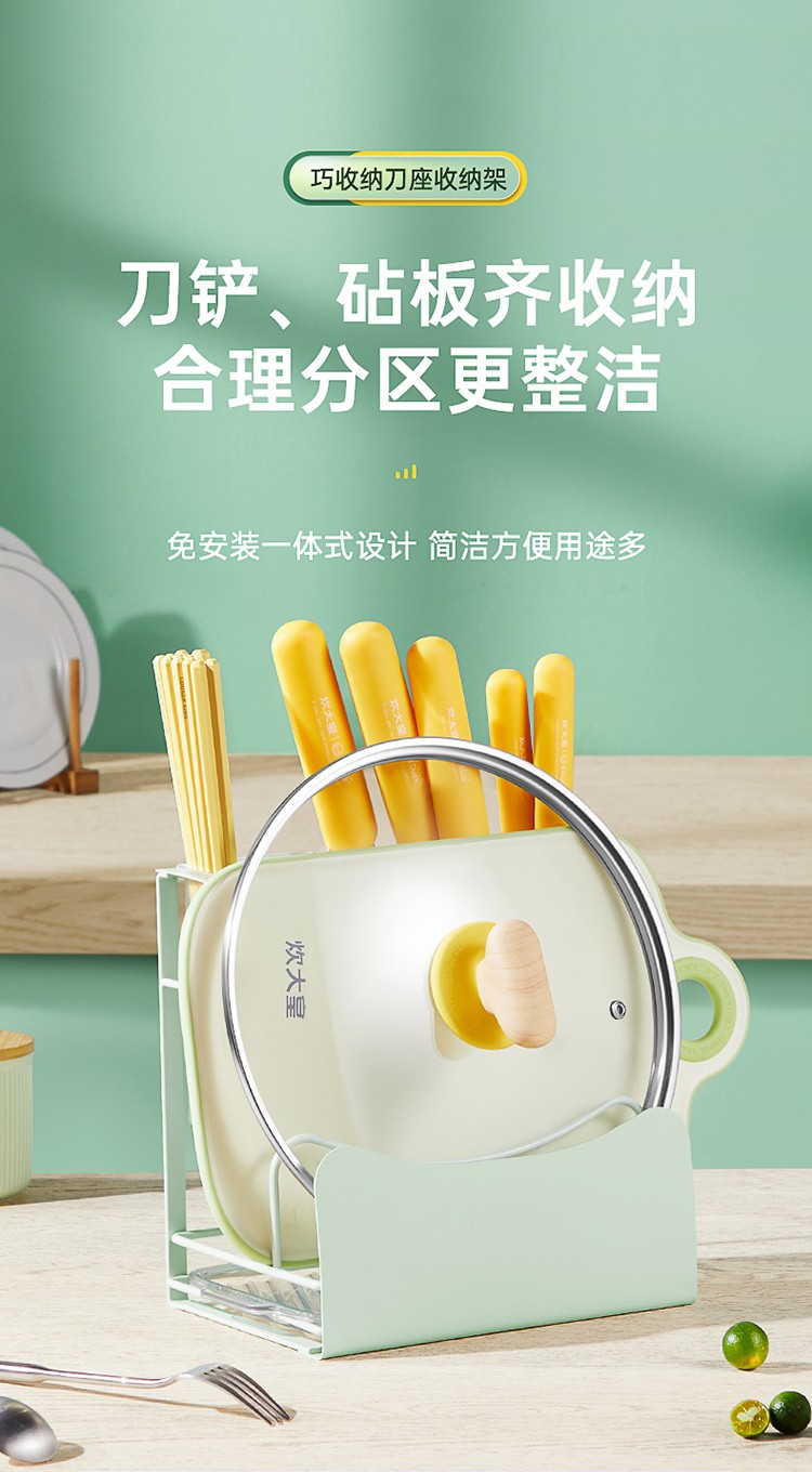 炊大皇刀架置物架厨房刀具置物架刀座砧板架免打孔菜刀架菜板锅盖架筷子筒厨房收纳架菜刀架