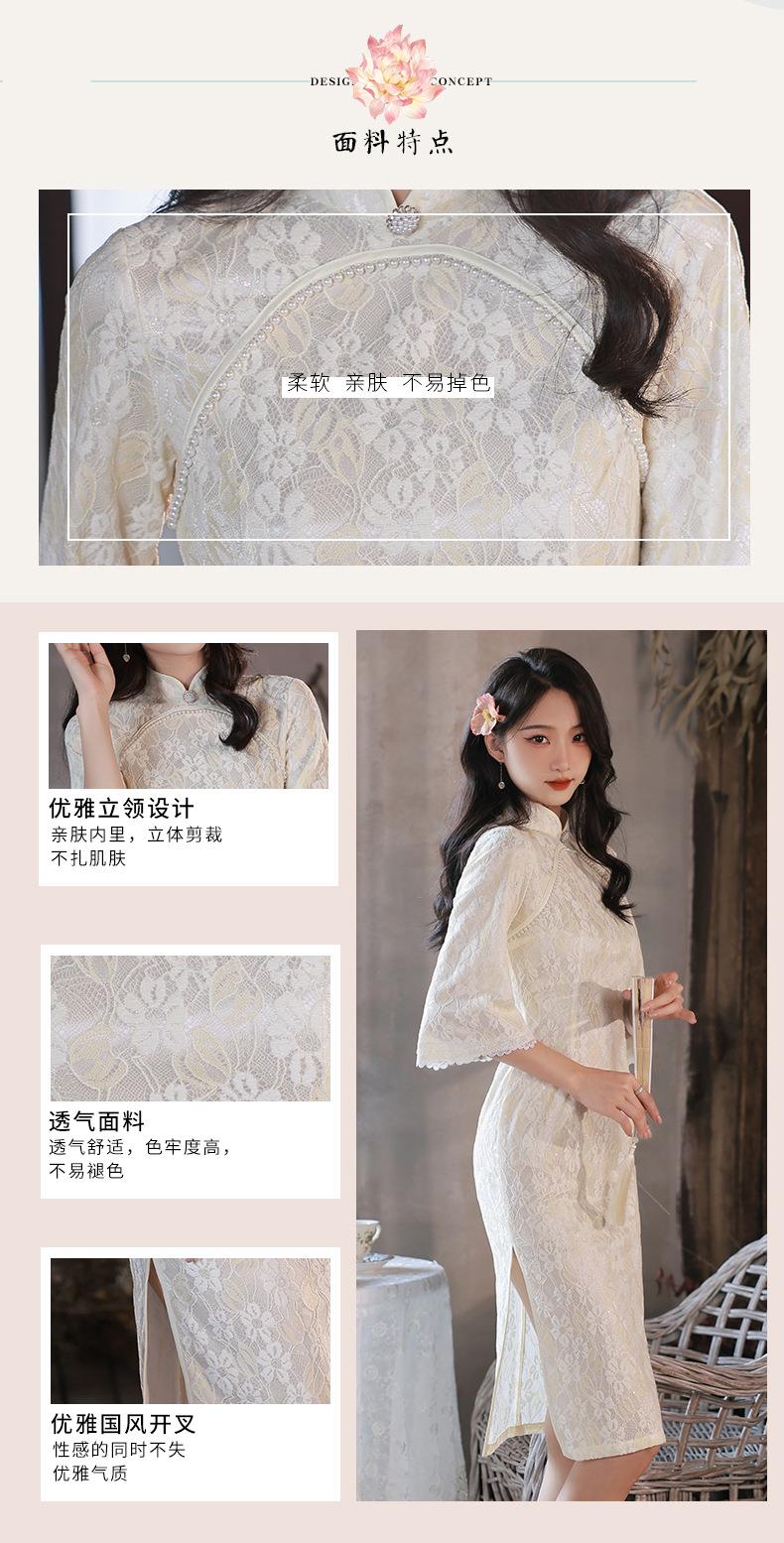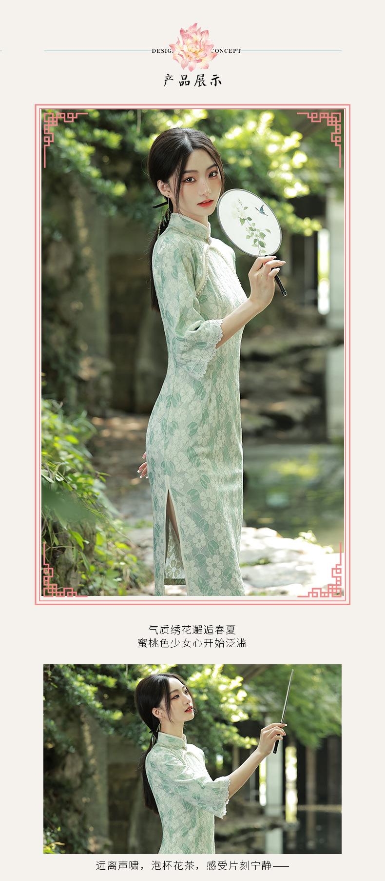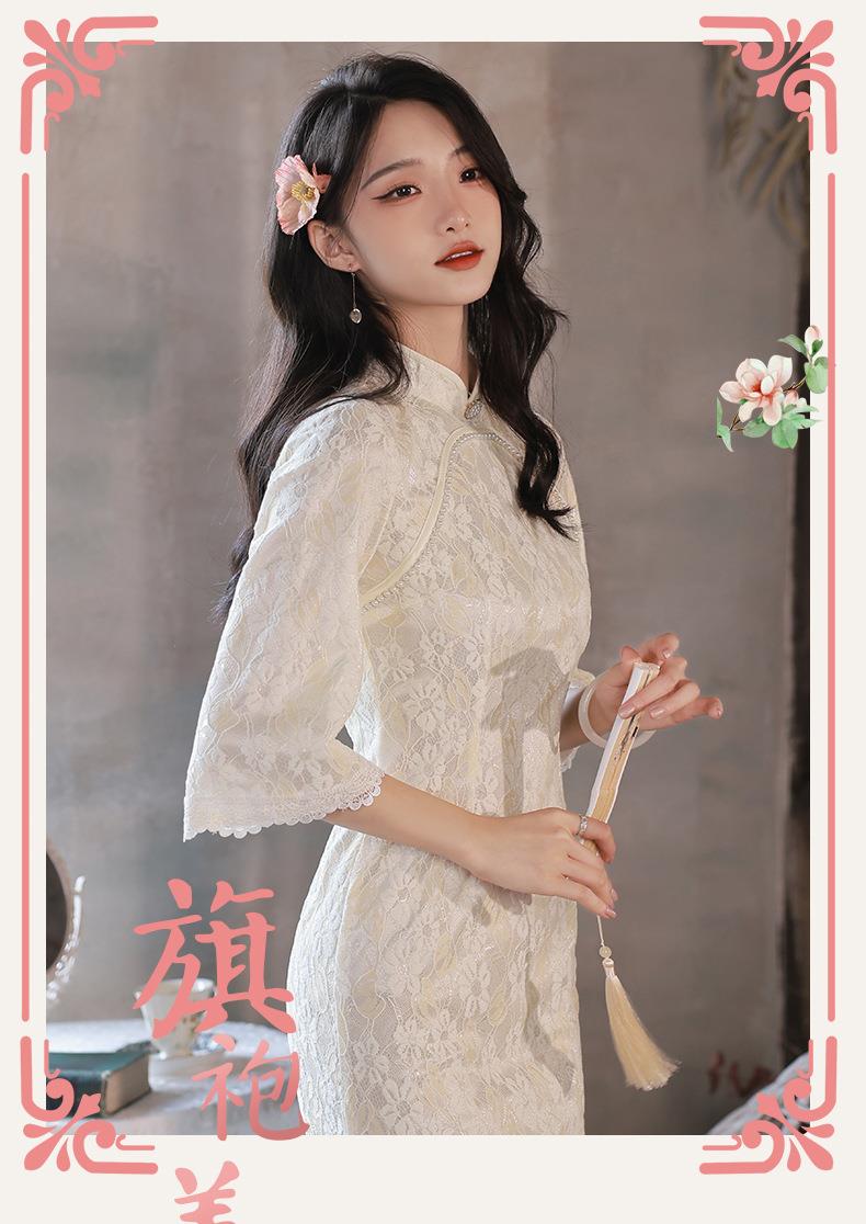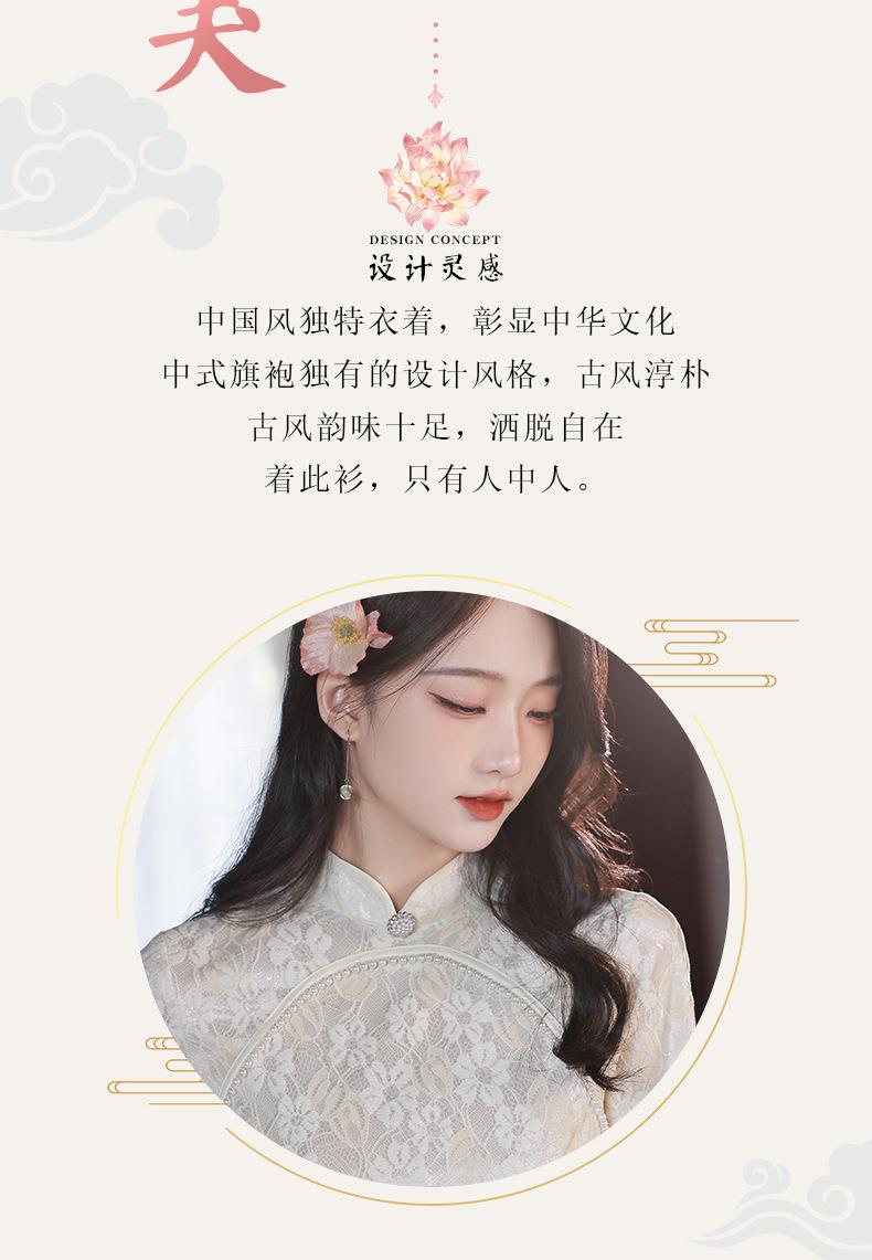 2022秋季新款复合蕾丝圆襟倒大袖旗袍 少女改良旗袍连衣裙年轻款