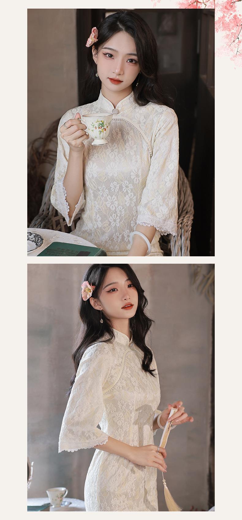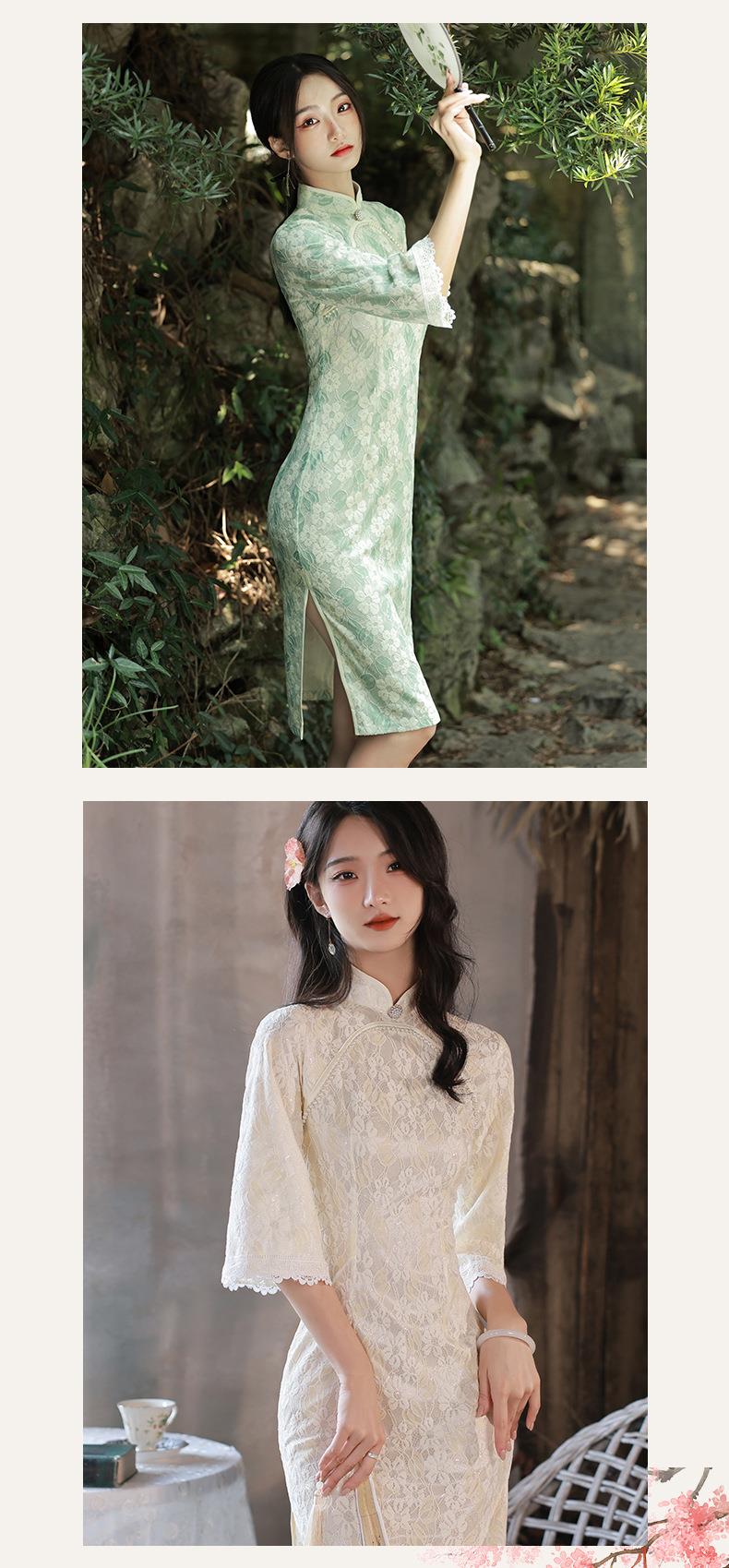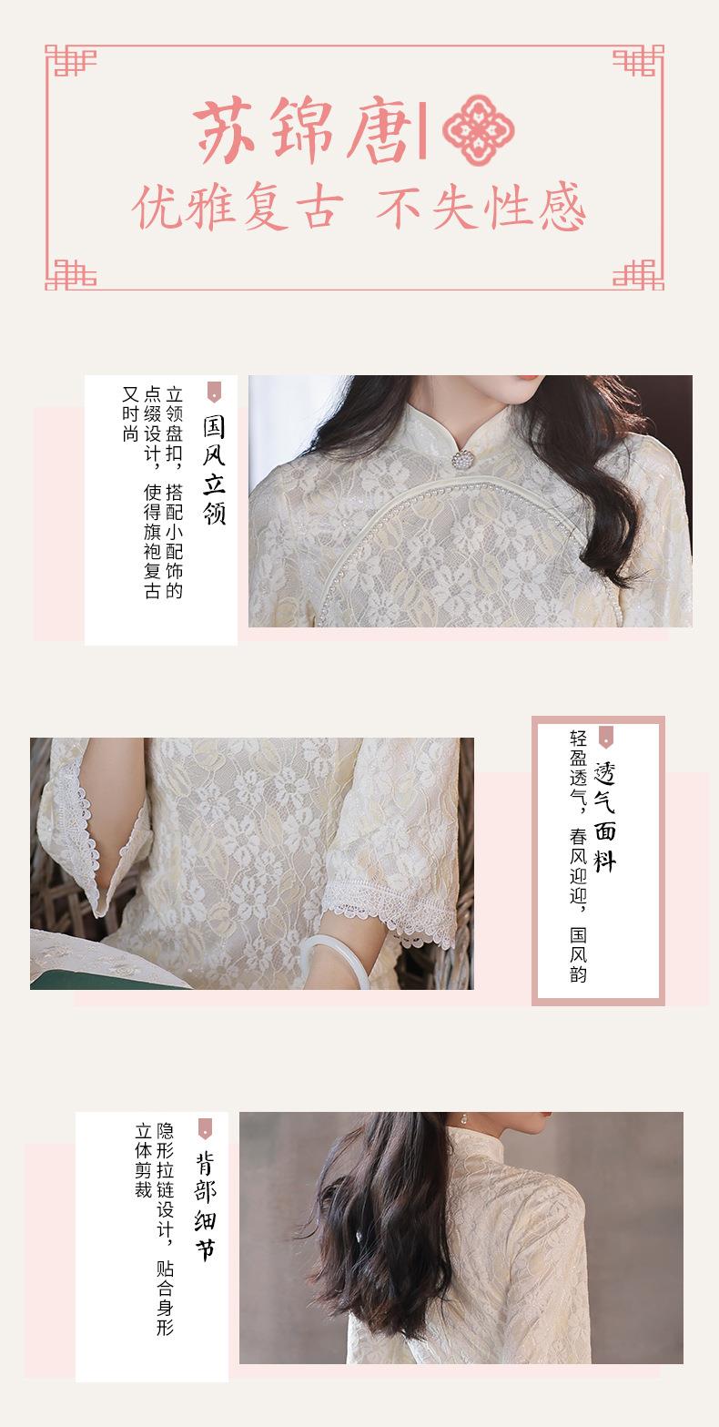 2022秋季新款复合蕾丝圆襟倒大袖旗袍 少女改良旗袍连衣裙年轻款