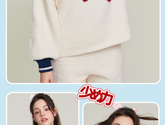 睡衣女珊瑚绒秋冬可外穿半边绒休闲家居服套装新款-艾德