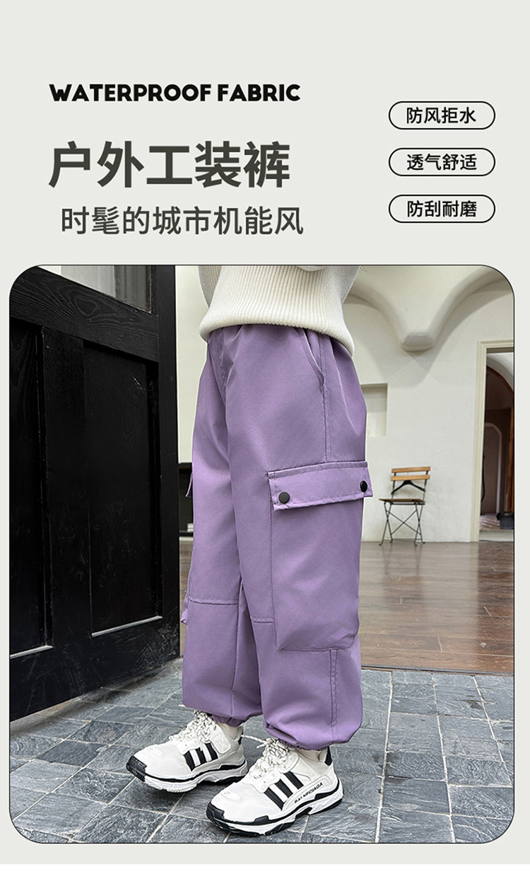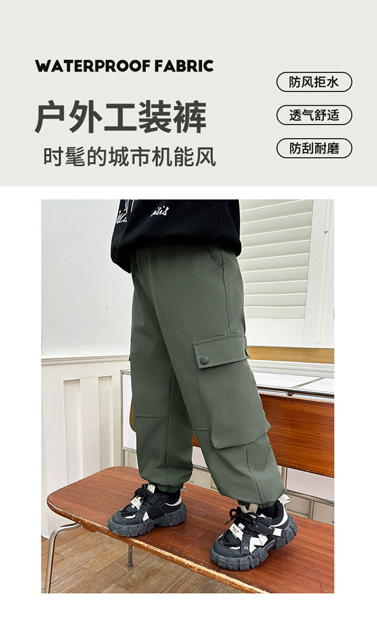 男童秋冬装加绒春秋裤子工装裤儿大童防风防水运动冲锋裤2024新款