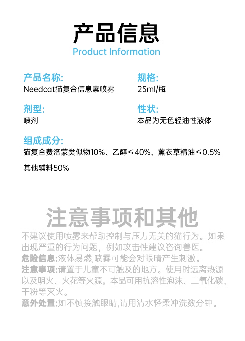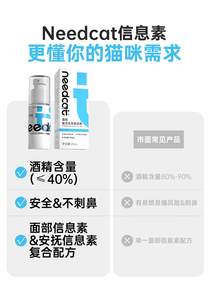 needcat你的猫 猫咪复合信息素喷雾 情绪安抚 预防应激 25ml/瓶