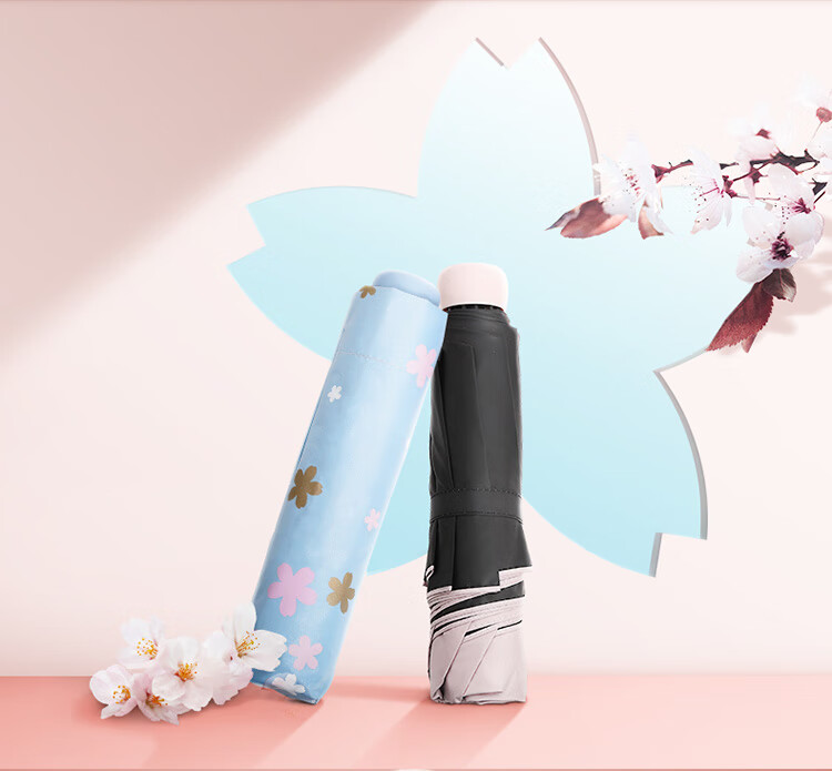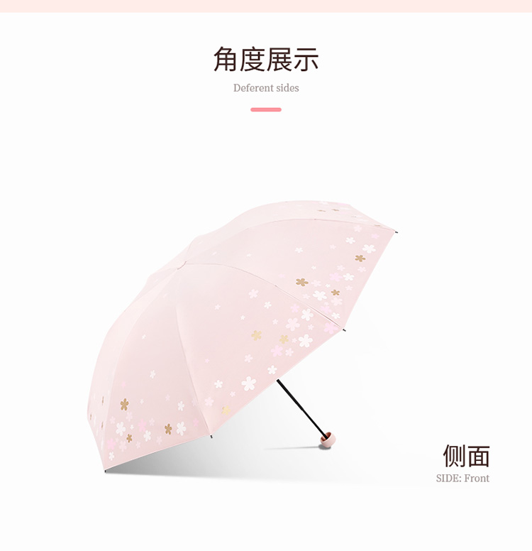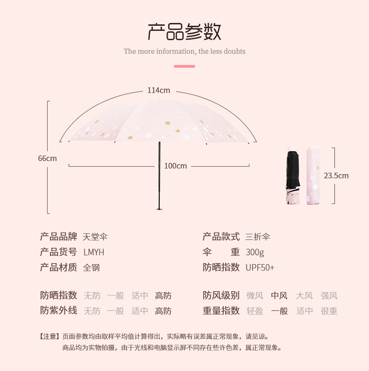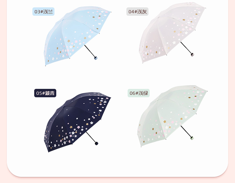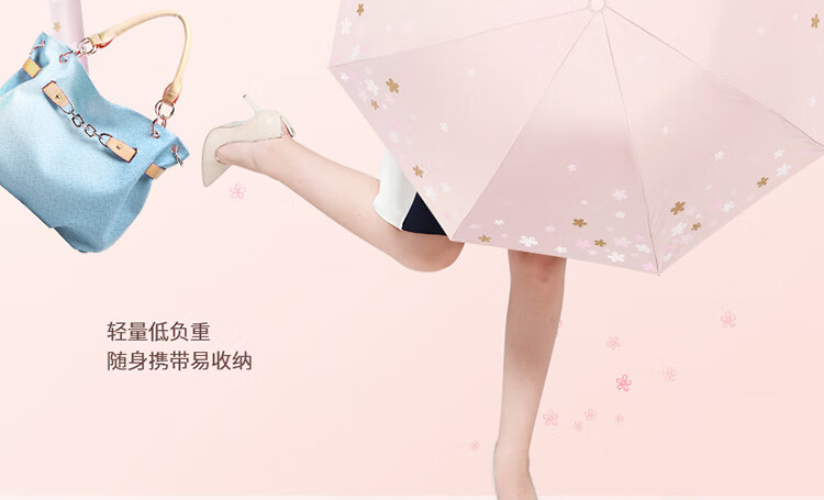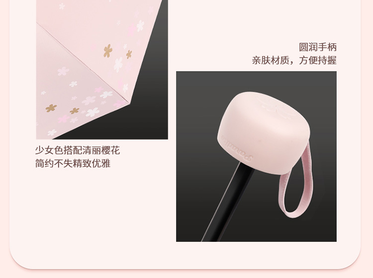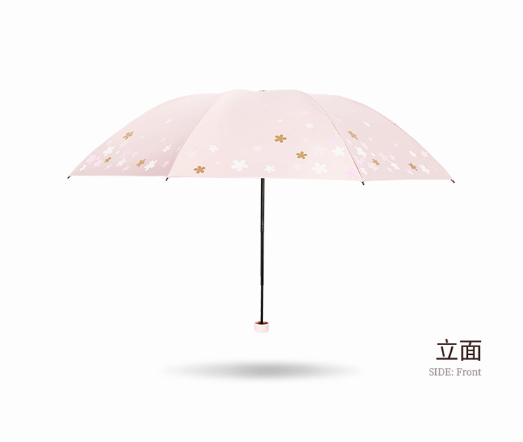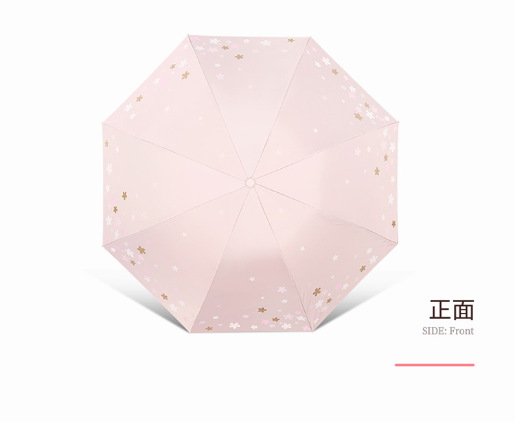 天堂伞 33633E浪漫樱花,涤丝纺黑胶三折8骨晴雨伞