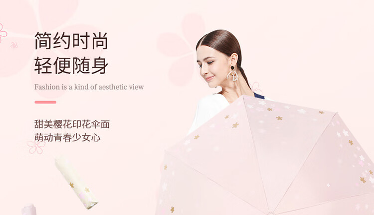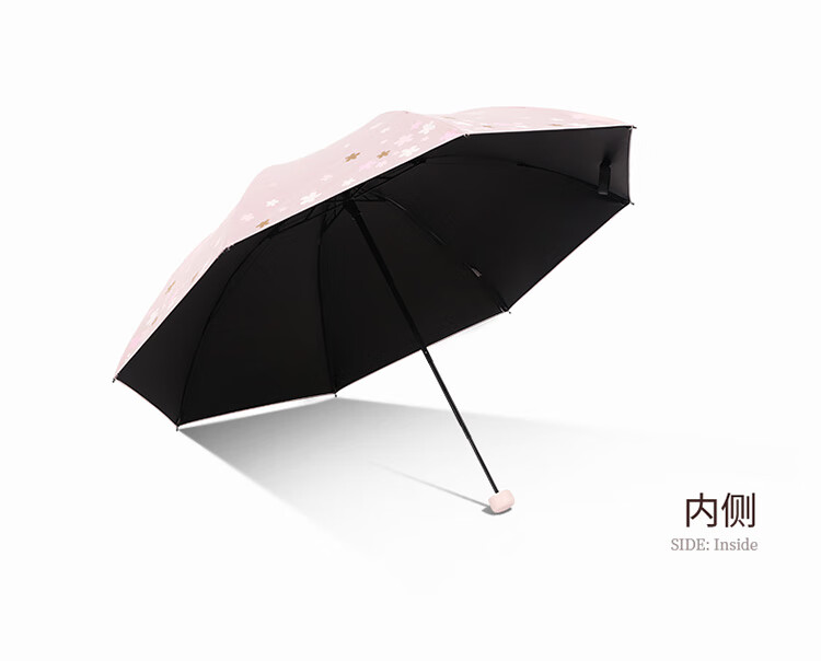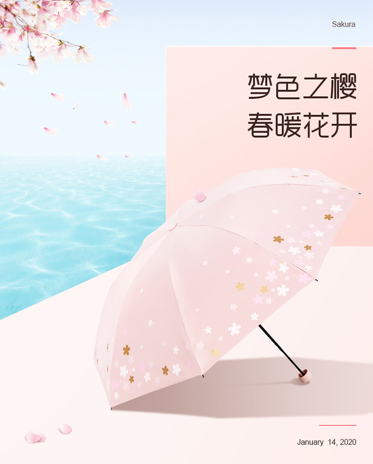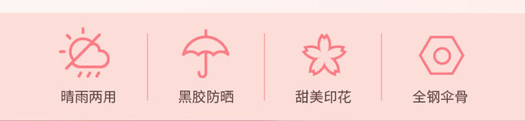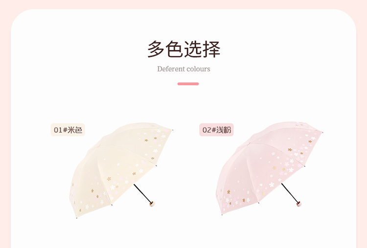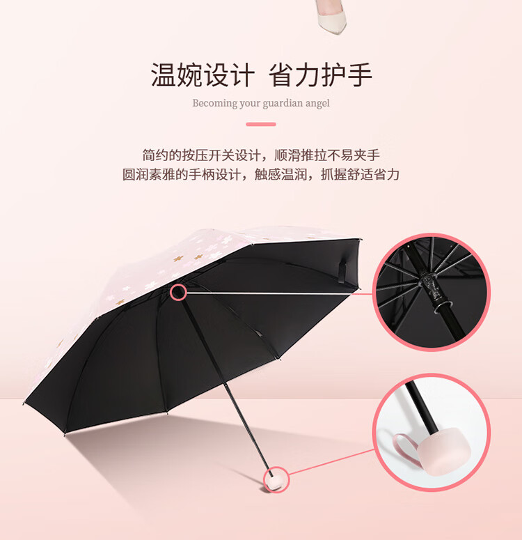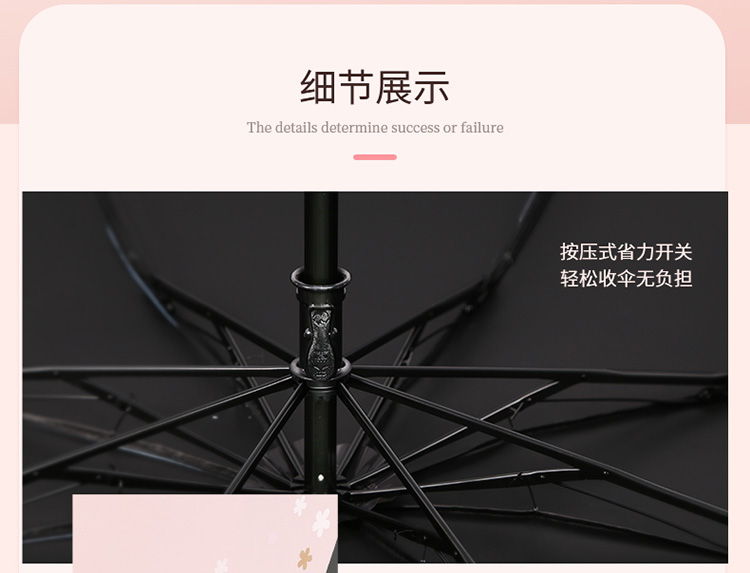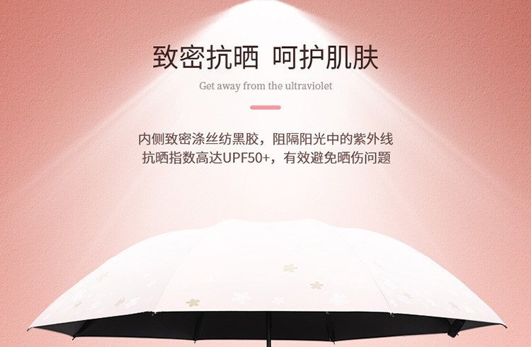 天堂伞 33633E浪漫樱花,涤丝纺黑胶三折8骨晴雨伞