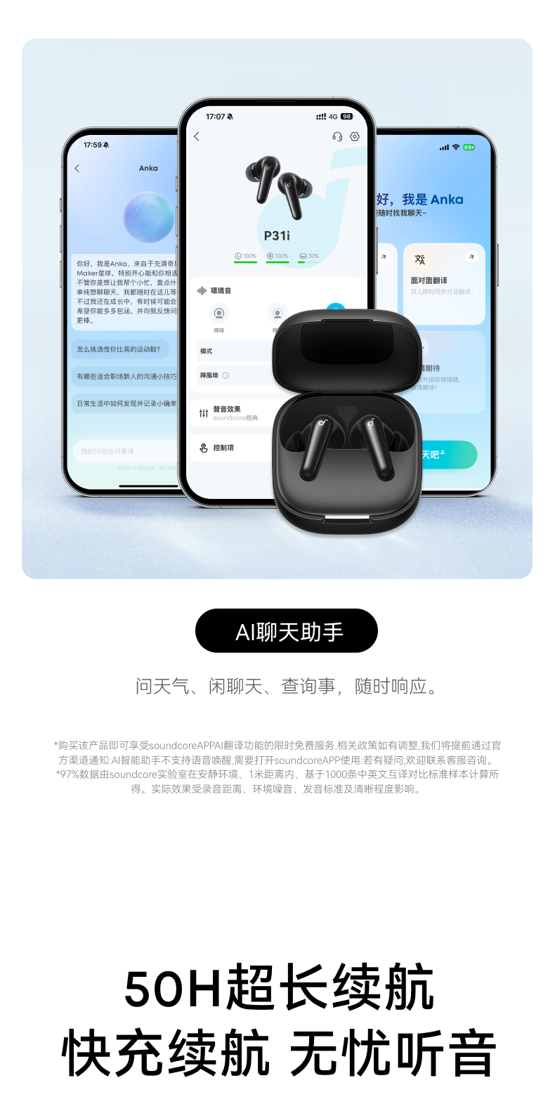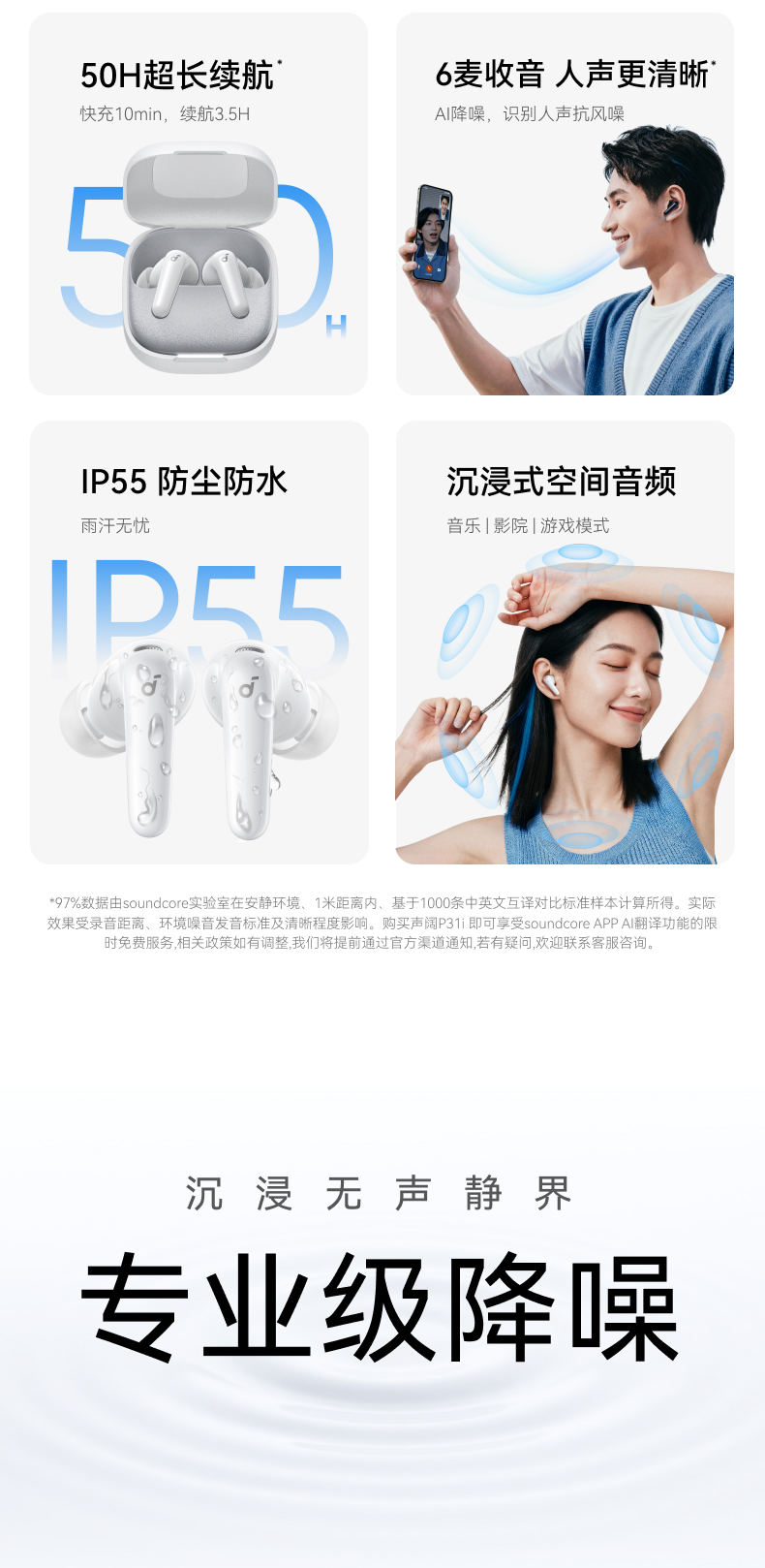 【新品】Soundcore声阔 P31i 入耳式降噪耳机 D1202