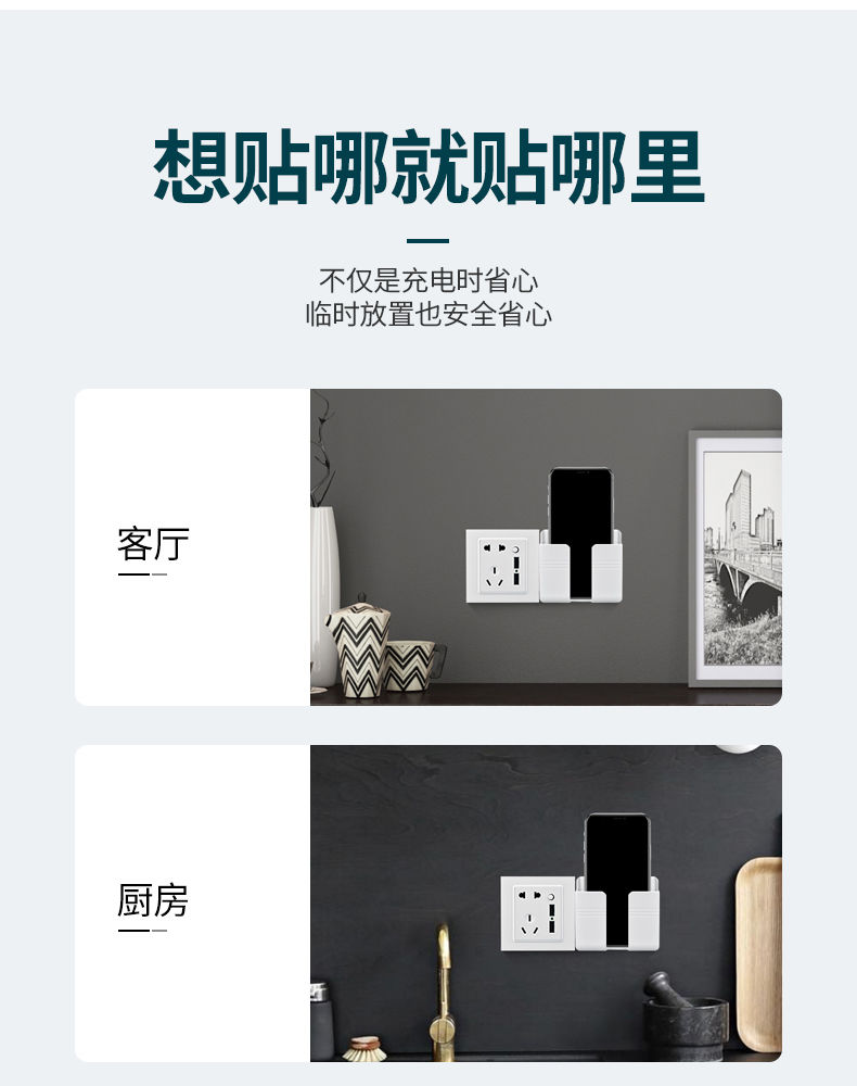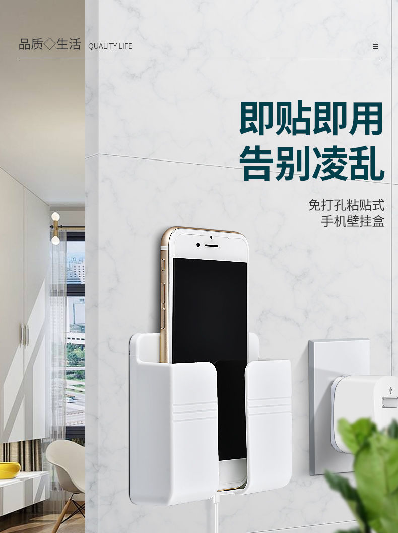 【免打孔壁挂收纳盒手机充电支架】 家用壁挂收纳盒卧室电视空调遥控器客厅 置物架
