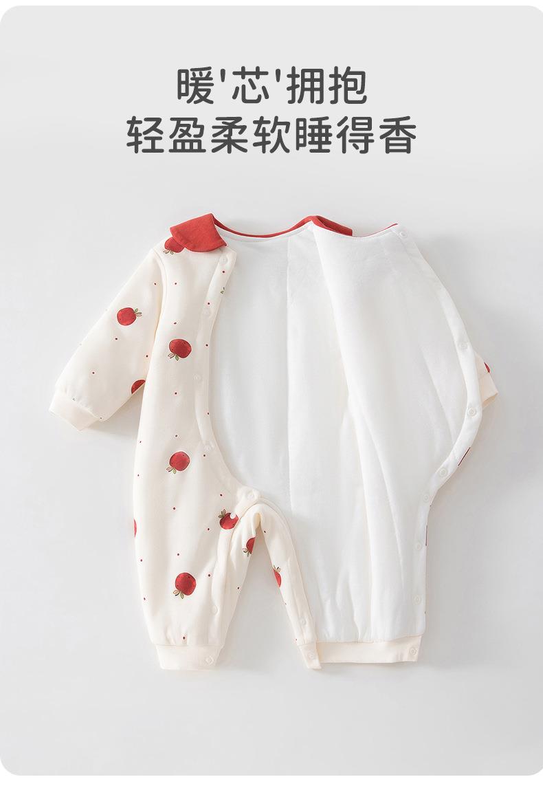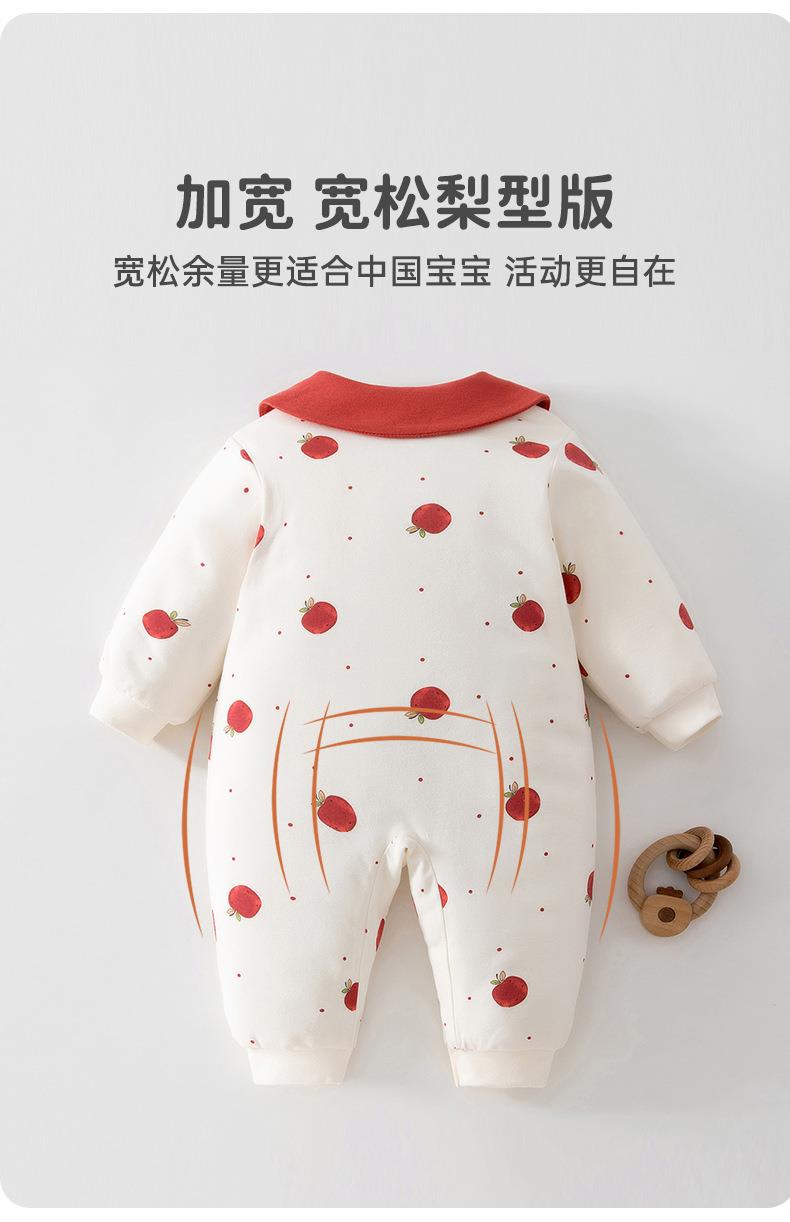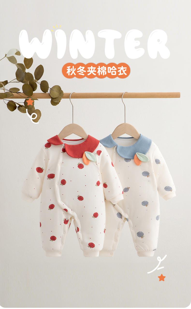 婴儿冬季夹棉连体衣女宝宝休闲风爬服80克秋冬季外出服家居服