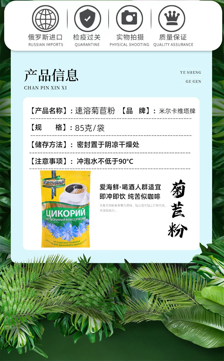 【中欧班列精选】俄罗斯菊苣粉 原装进口米尔卡维塔牌速溶菊苣/山楂粉/蓝莓粉 85g/100g/袋