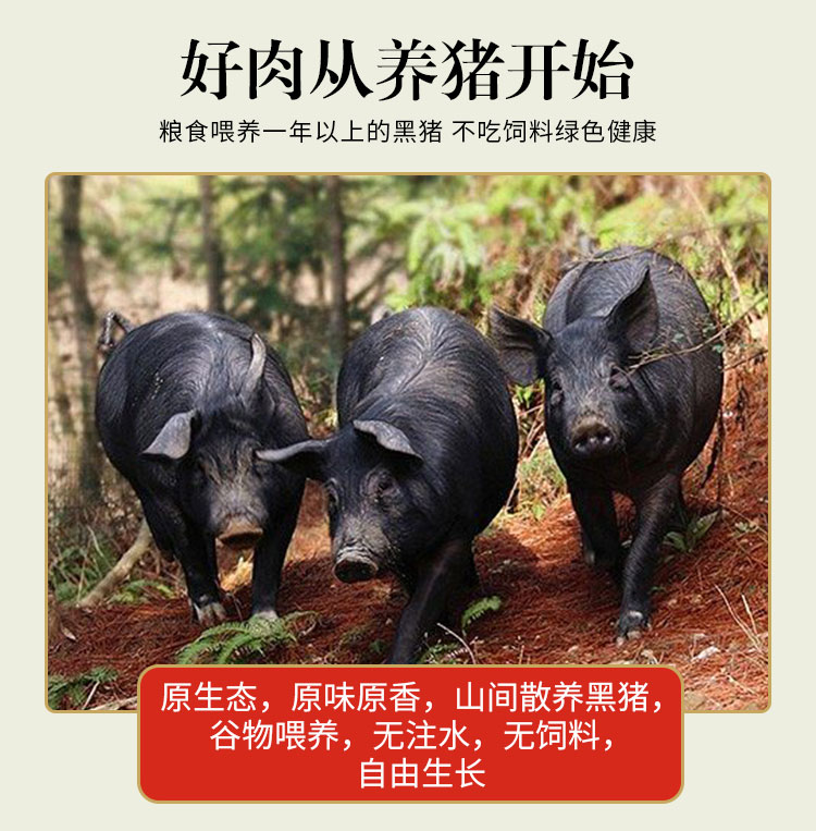 山西立景母乳山农家林间散养正宗黑猪肉新鲜黑猪腿肉现杀真空包装