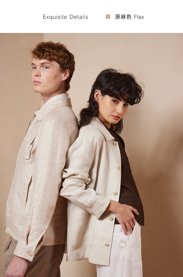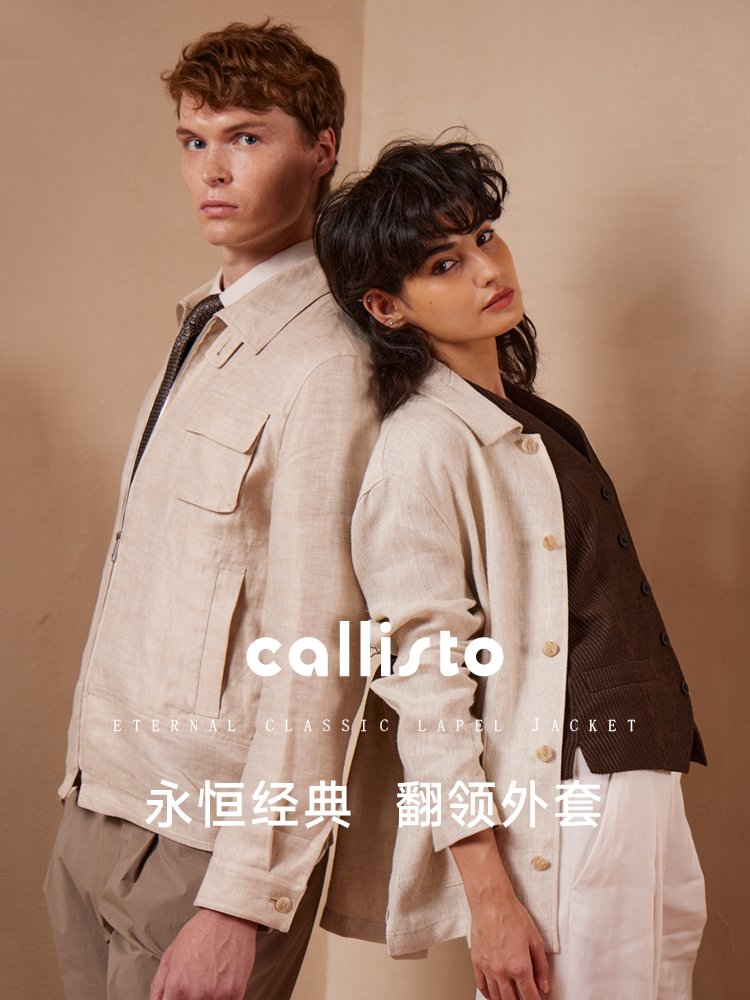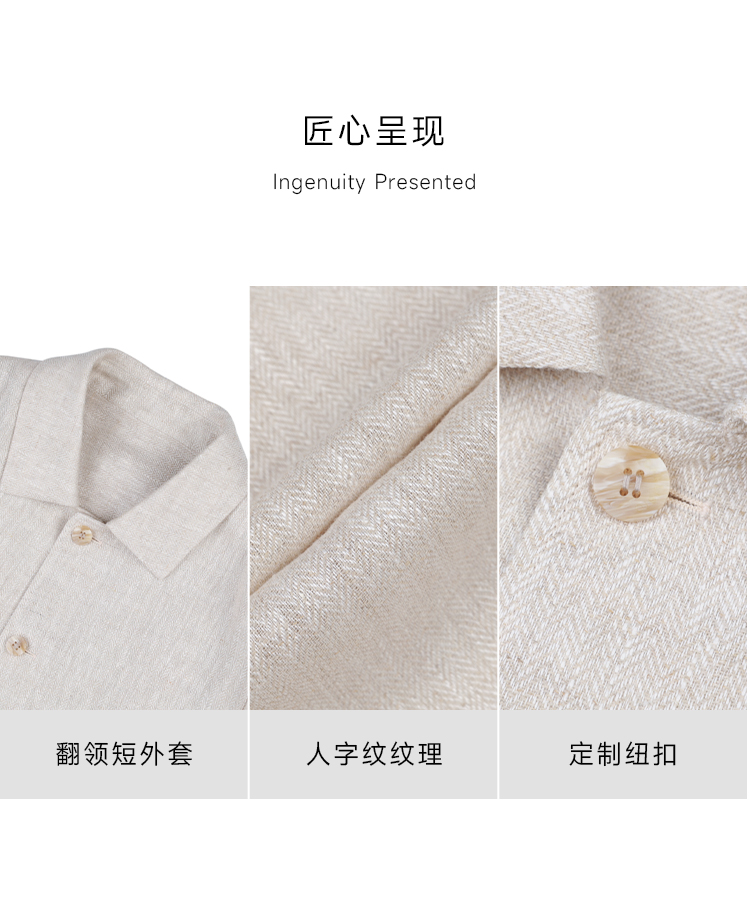 【共享衣橱】callisto亚麻人字纹翻领短外套