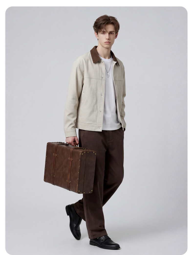 【不易变形】圣得西休闲外套男款春装2026新款简约复古翻领夹克