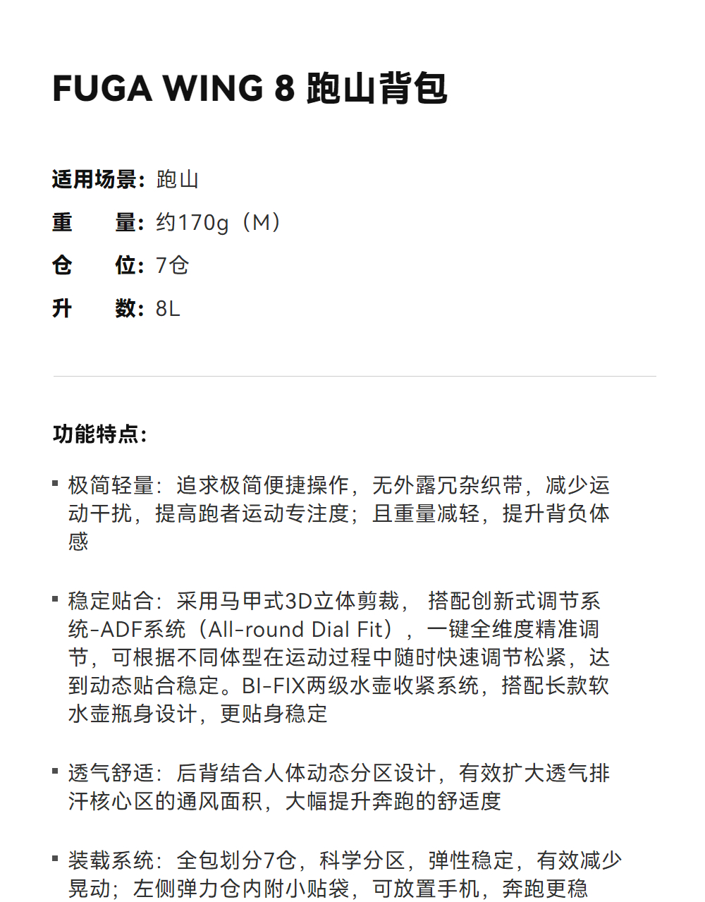 KAILAS凯乐石 FUGA WING 8 跑山背包 KA2654004