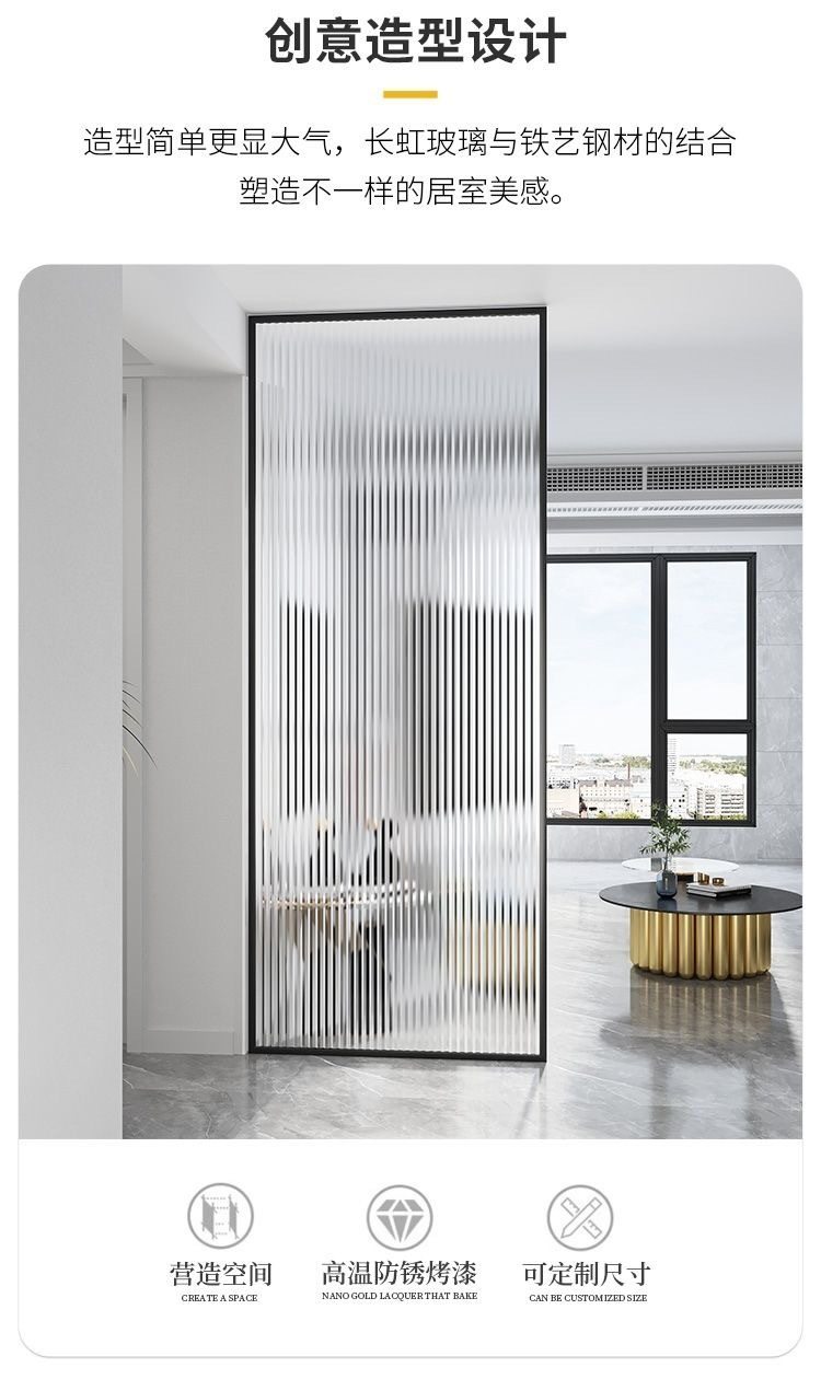 入户屏风隔断浴室客厅长虹轻奢卫生间铁艺钢化玻璃不锈钢玄关