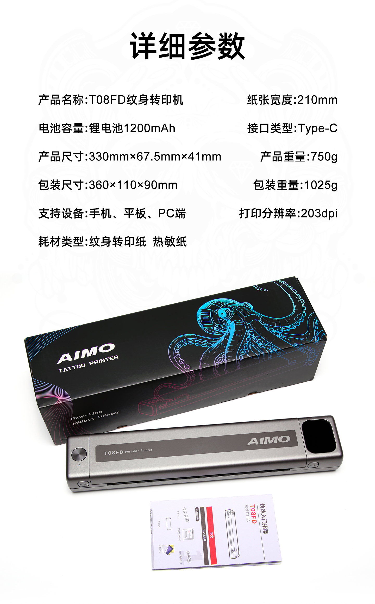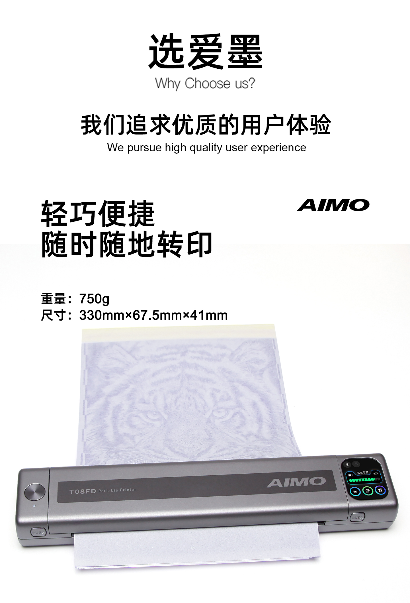 T08FSD彩屏液晶屏纹身转印机AIMO设计手稿A4刺青热敏打印机拷贝纸
