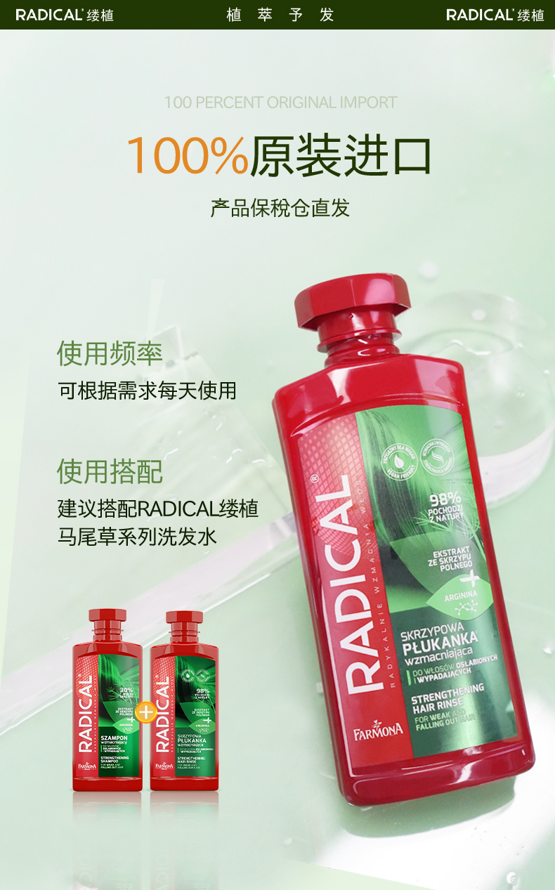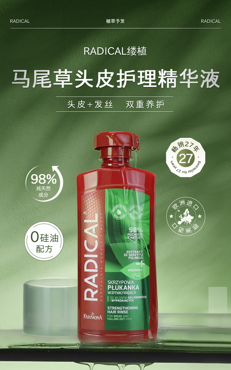 【临期清货】25年5月 波兰Radical马尾草护理精华液400ml 送喷雾瓶 包邮包税 保税直发