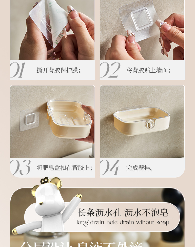 「镂空沥水」创意沥水肥皂盒奶油风卫生间壁挂式双层香皂盒置物收纳整理架不积水免打孔