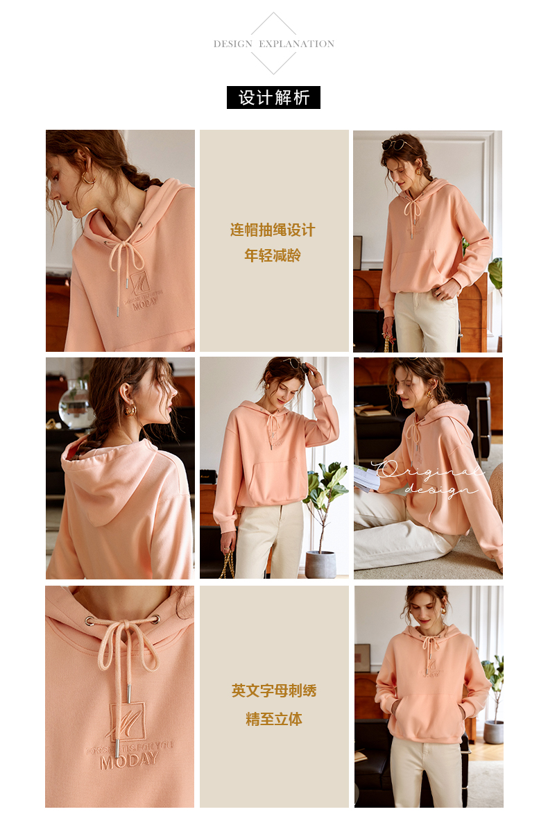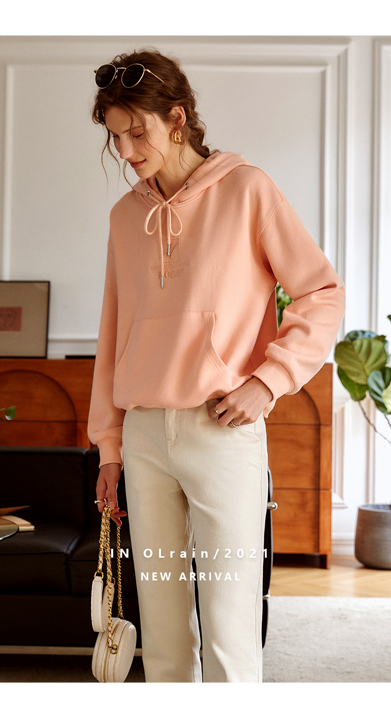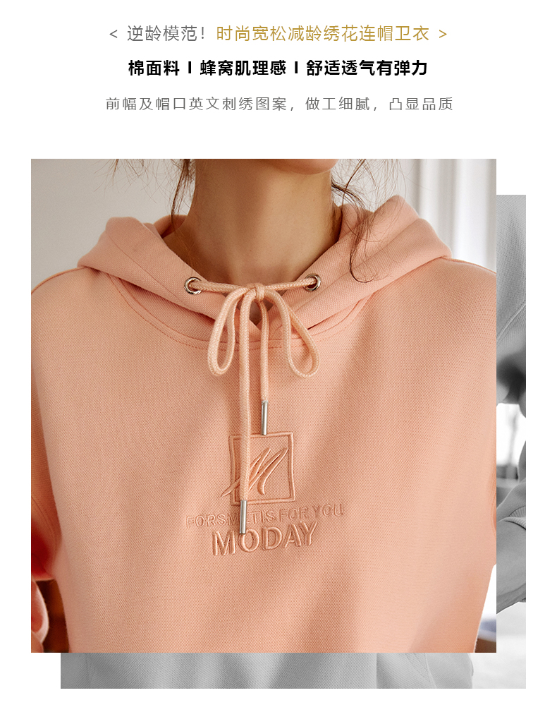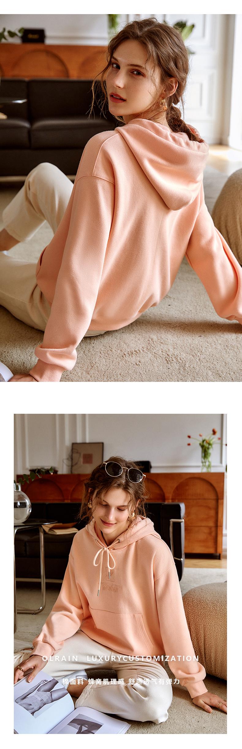 欧芮儿连帽卫衣女新款2021宽松显瘦时尚减龄绣花气质抽绳上衣