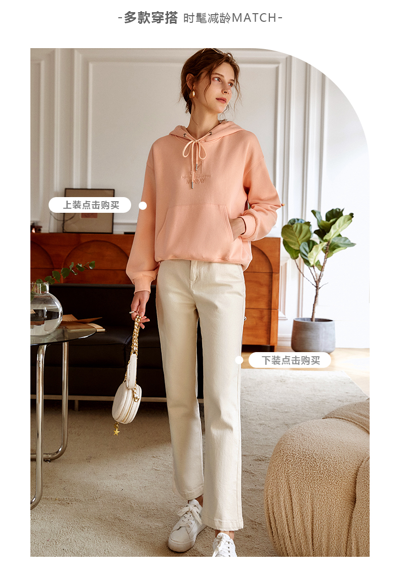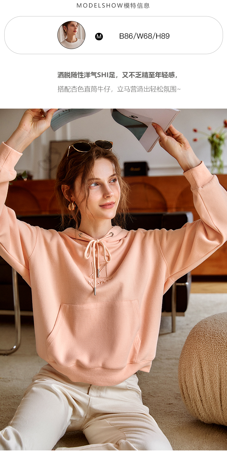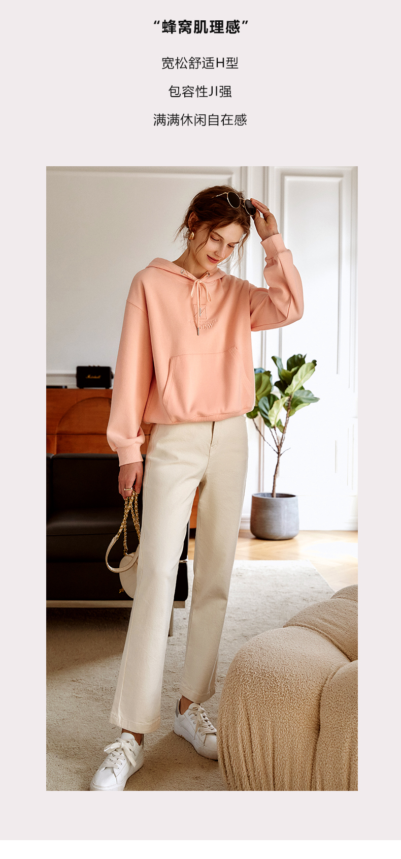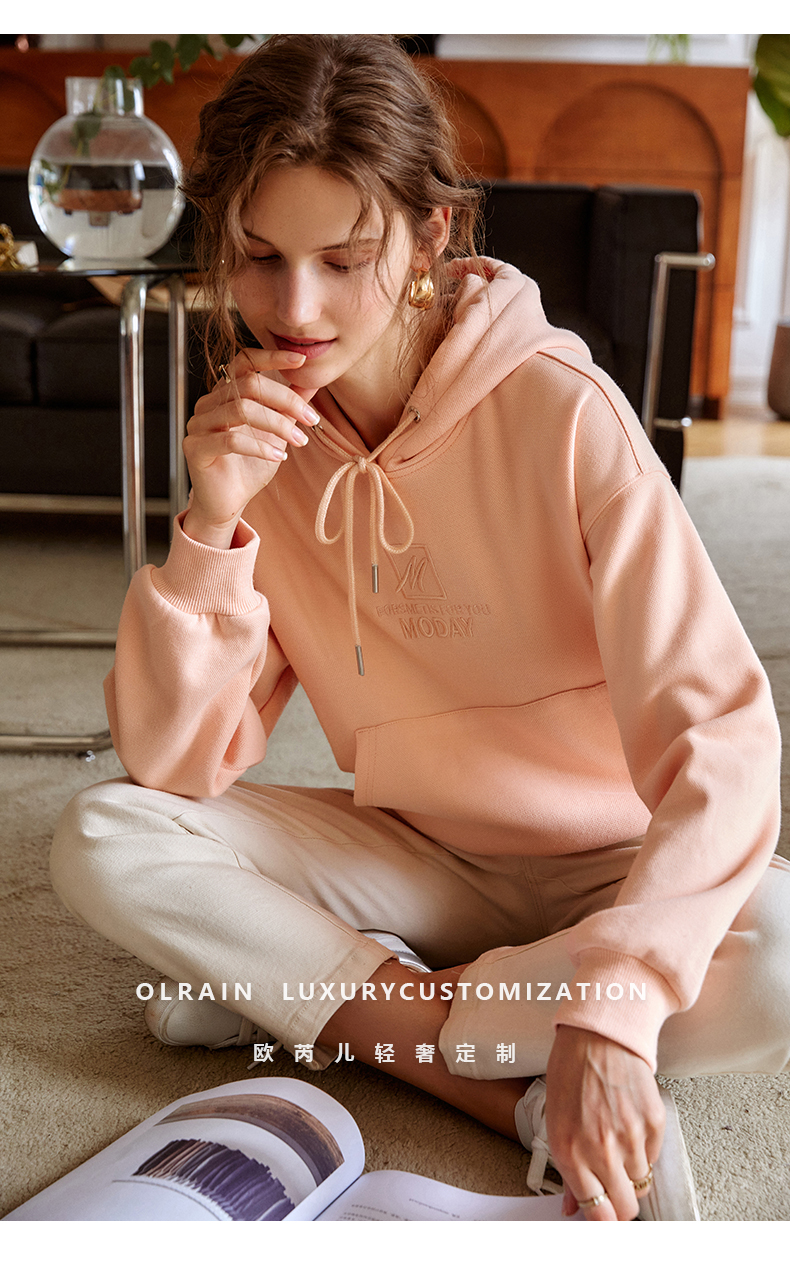 欧芮儿连帽卫衣女新款2021宽松显瘦时尚减龄绣花气质抽绳上衣