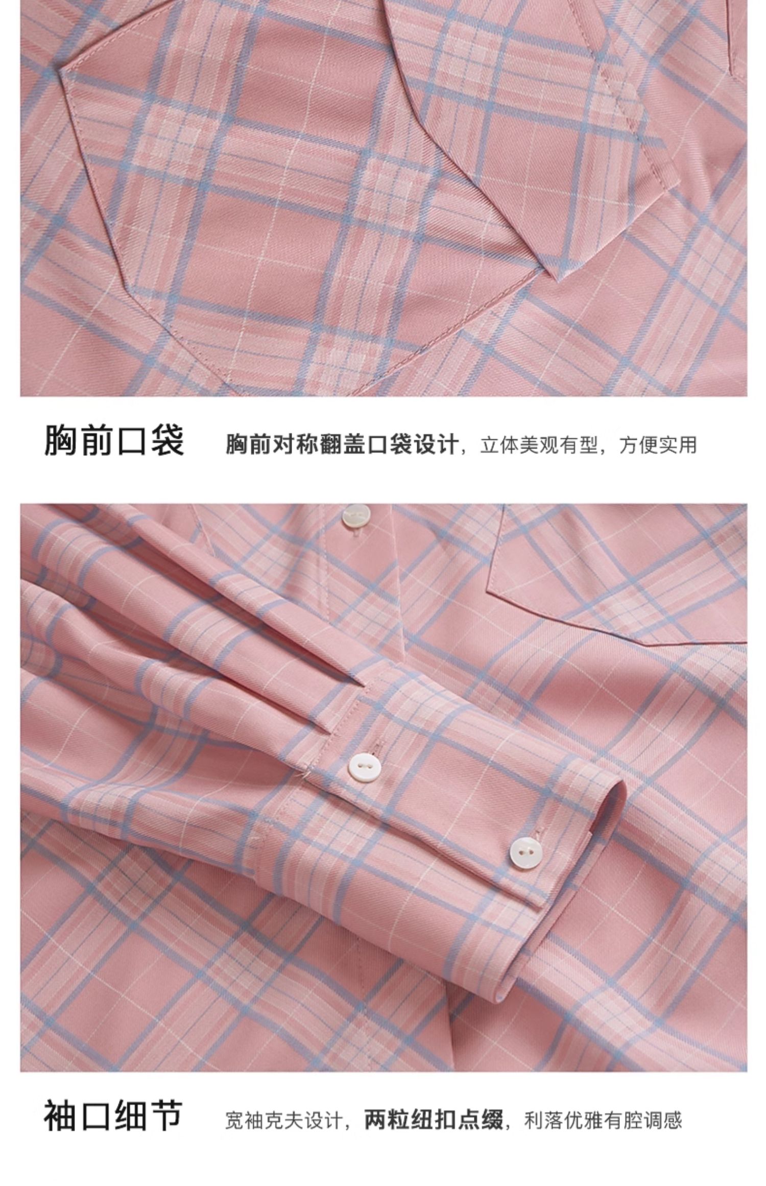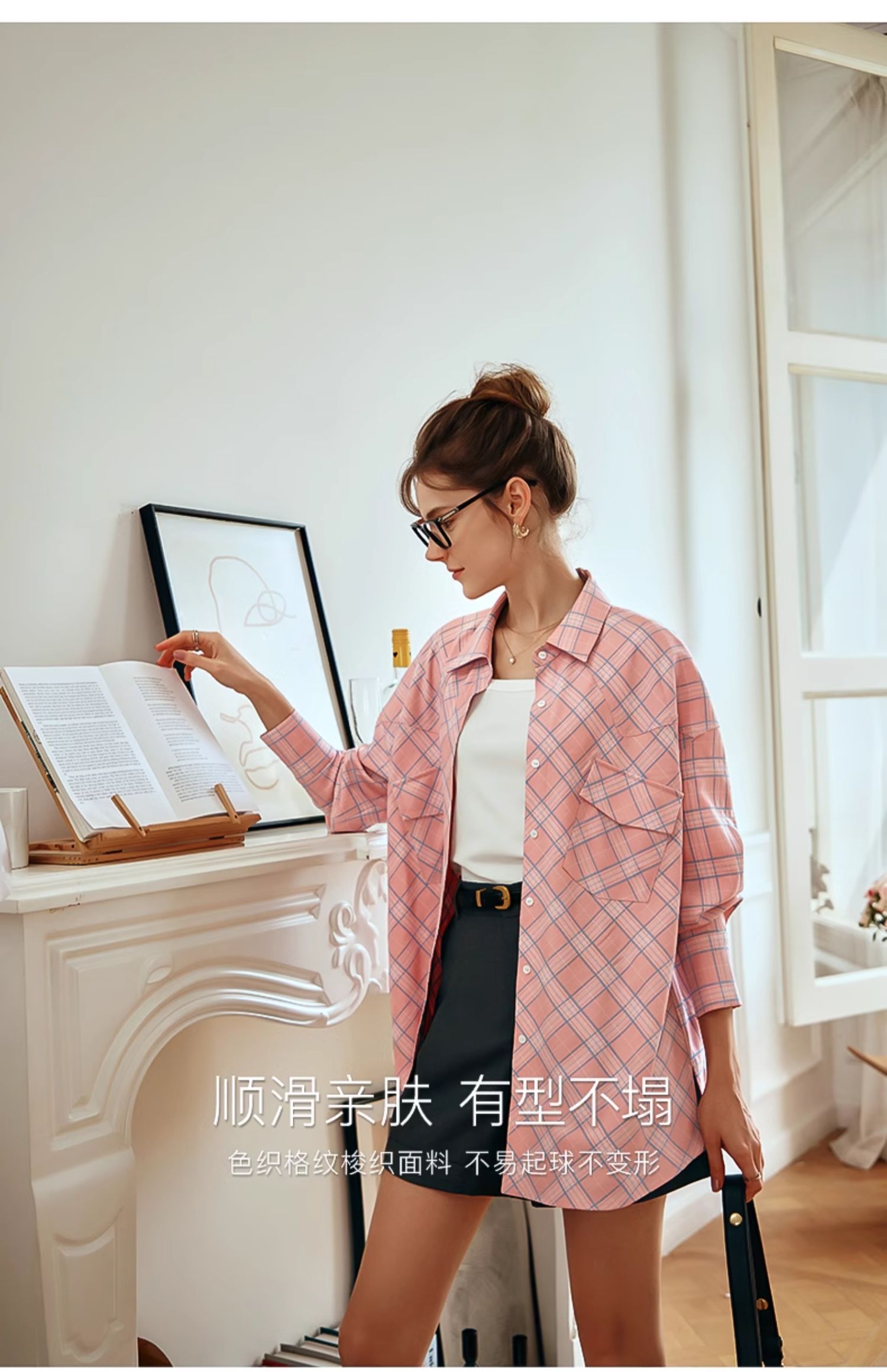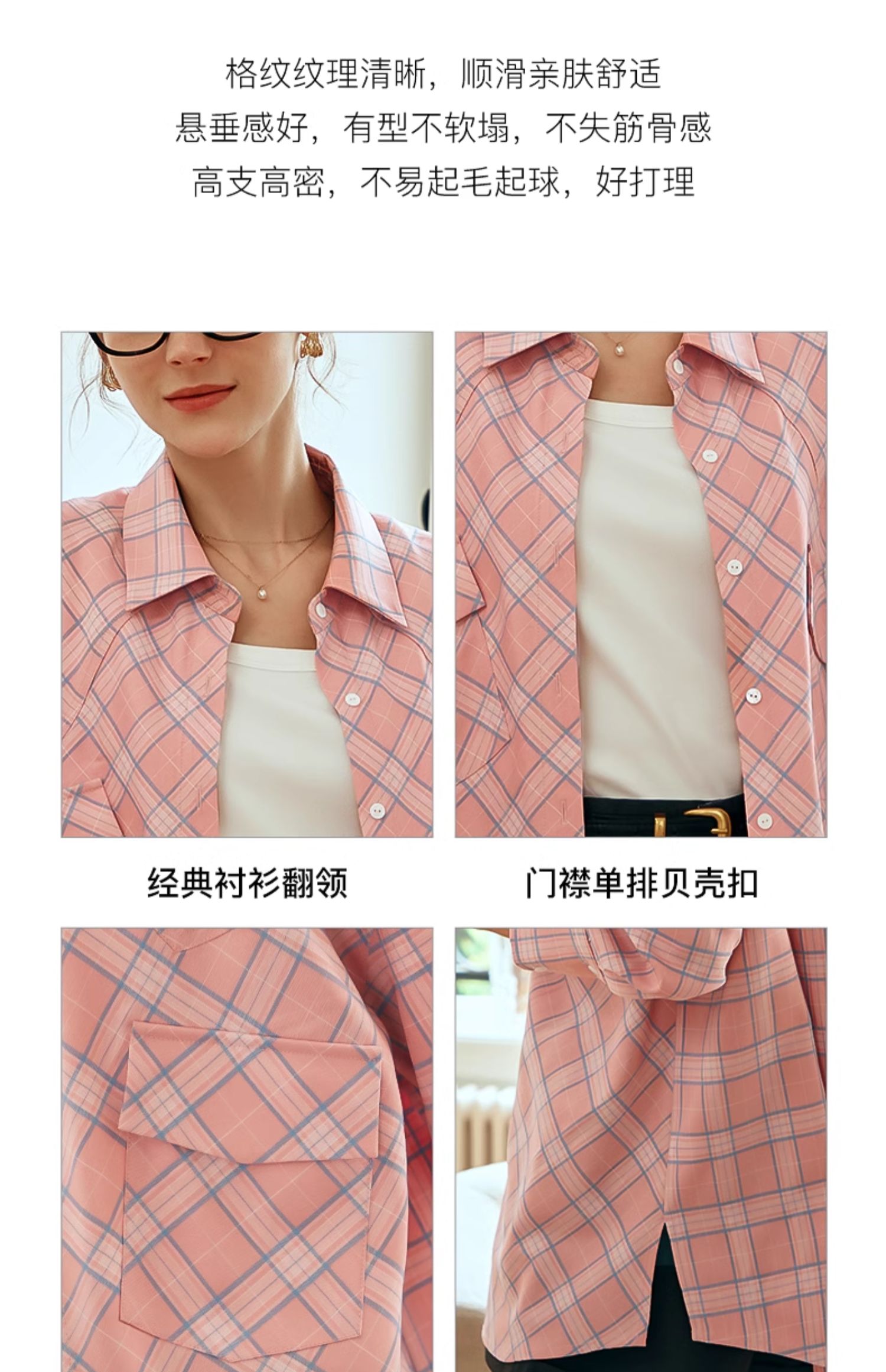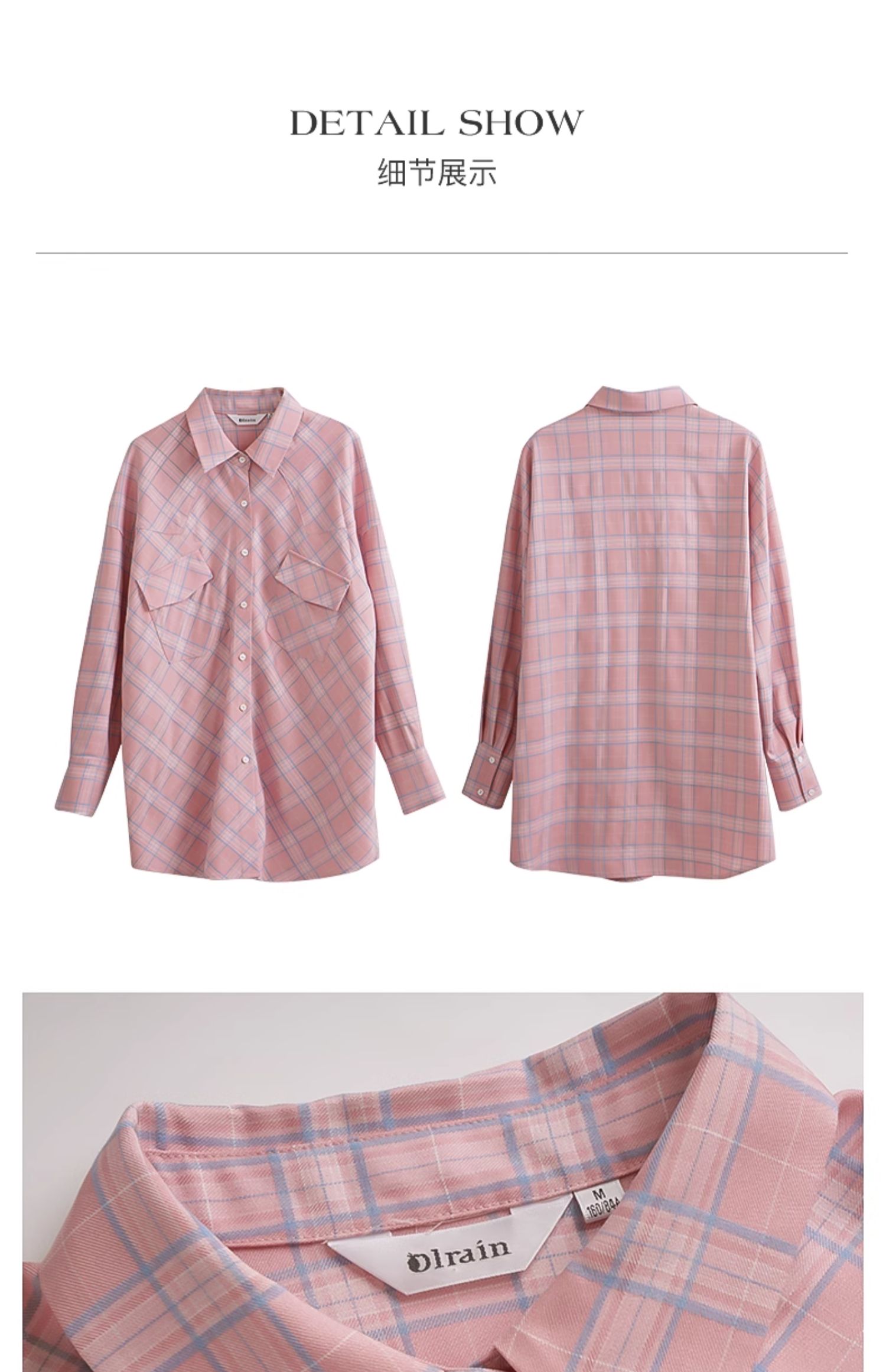 OLrain欧芮儿格纹衬衫女早春2024年新款宽松翻领慵懒风长袖外套