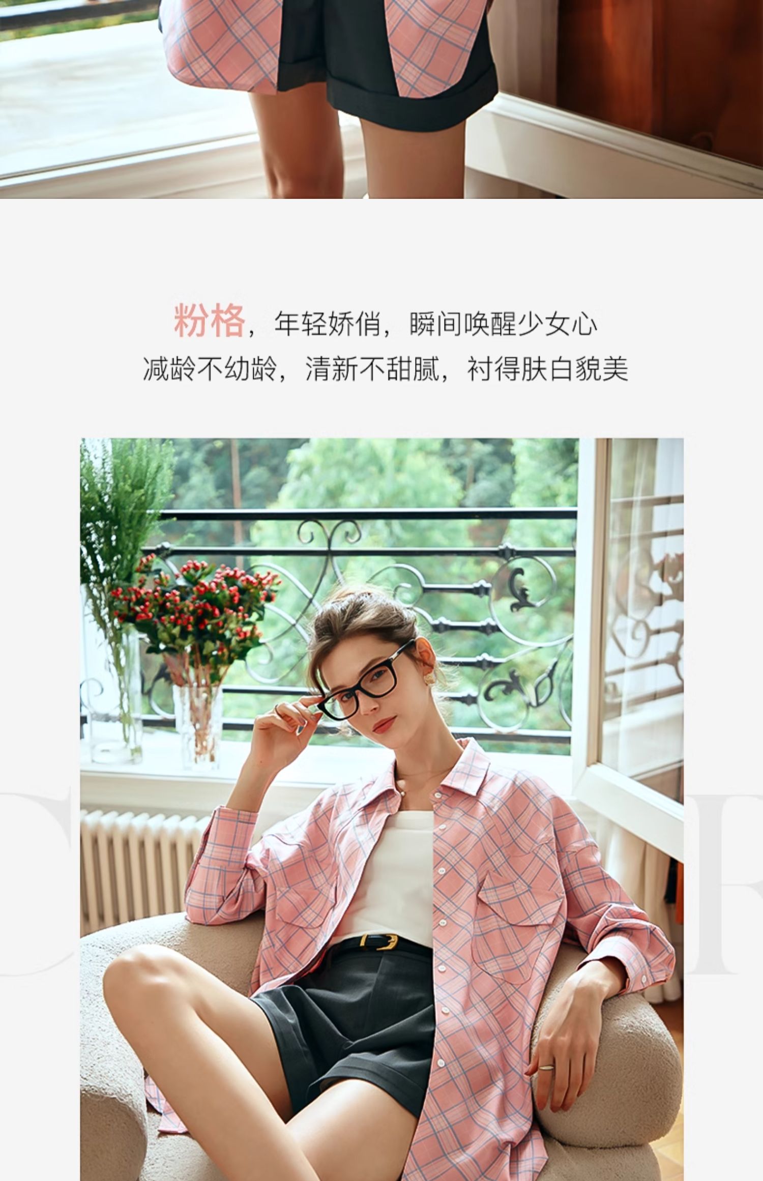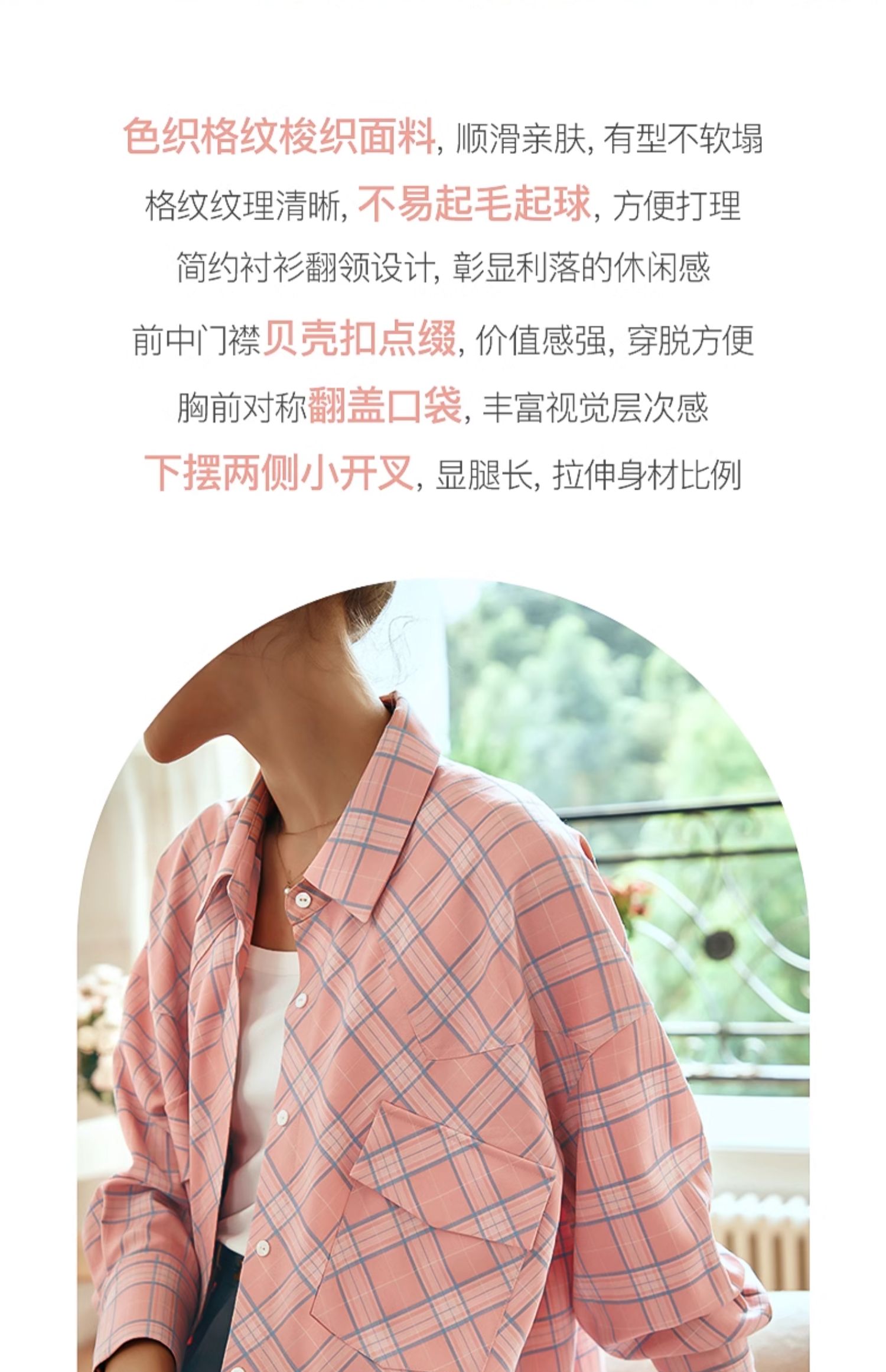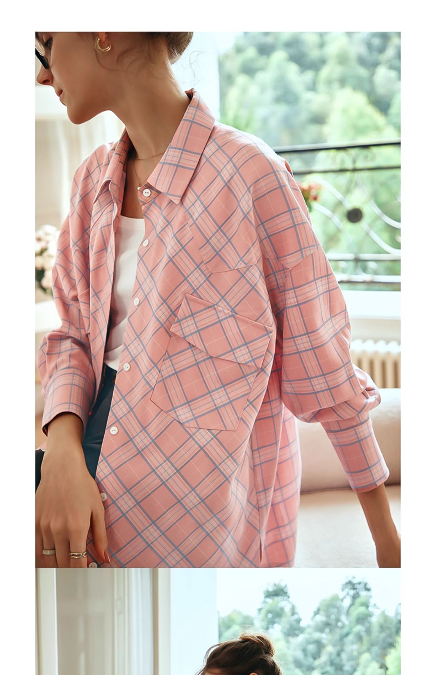 OLrain欧芮儿格纹衬衫女早春2024年新款宽松翻领慵懒风长袖外套