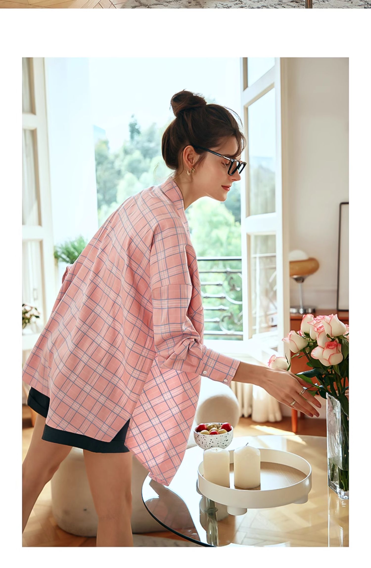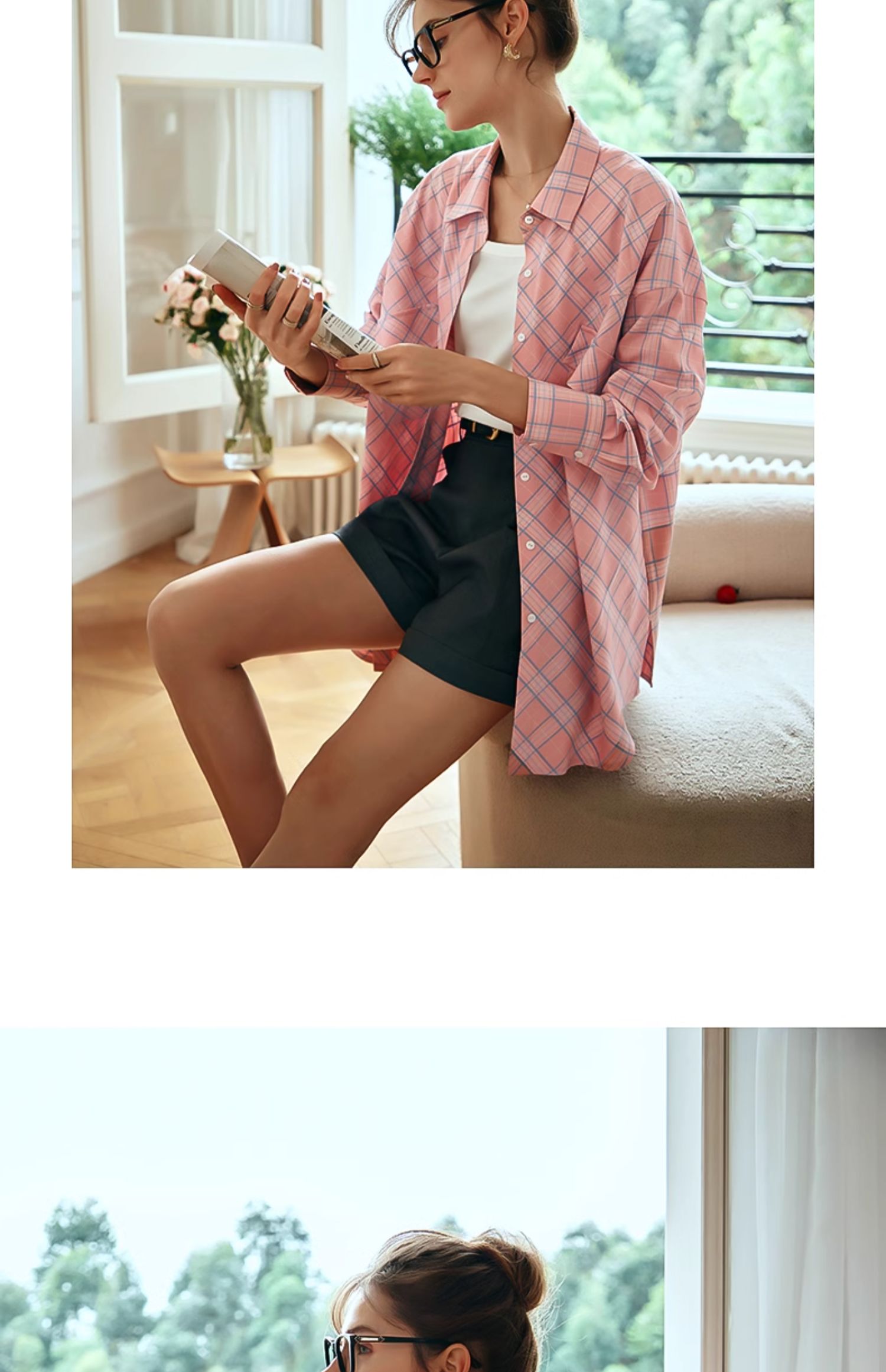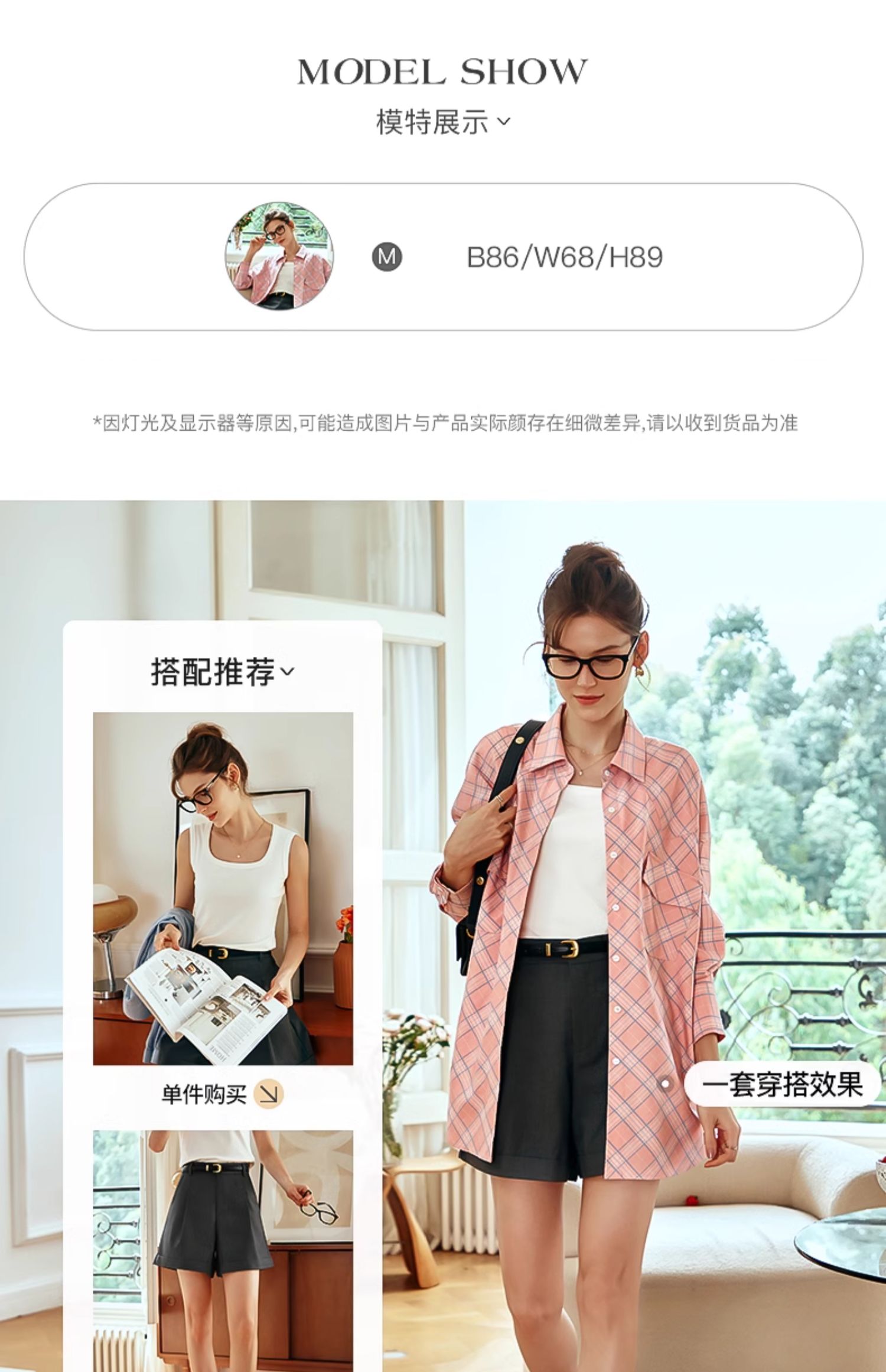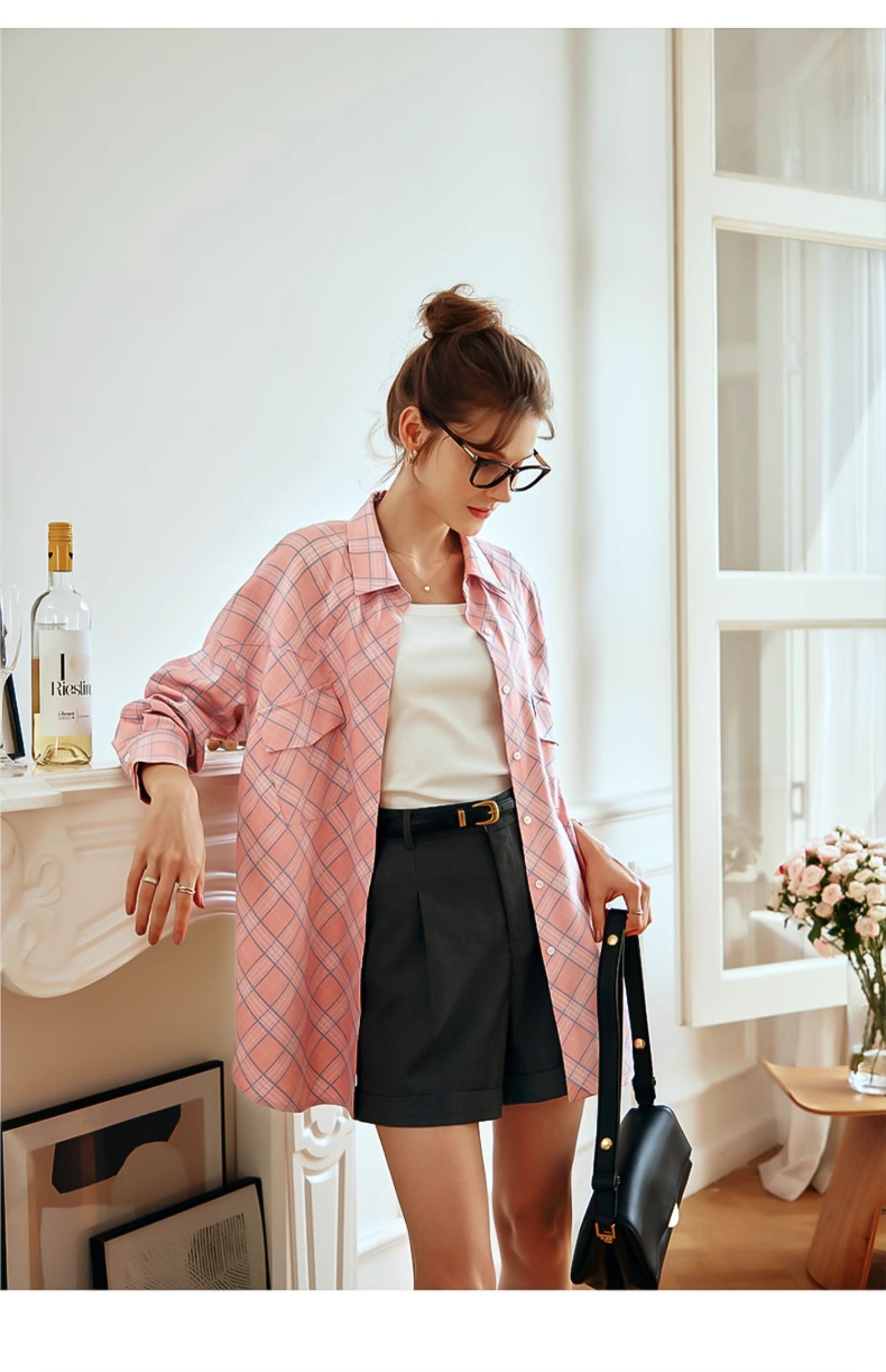 OLrain欧芮儿格纹衬衫女早春2024年新款宽松翻领慵懒风长袖外套