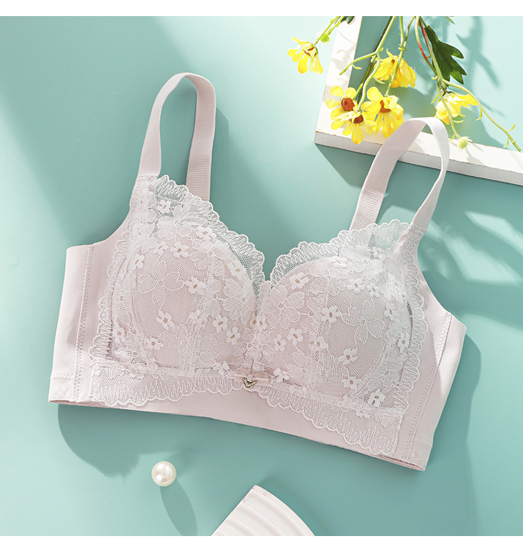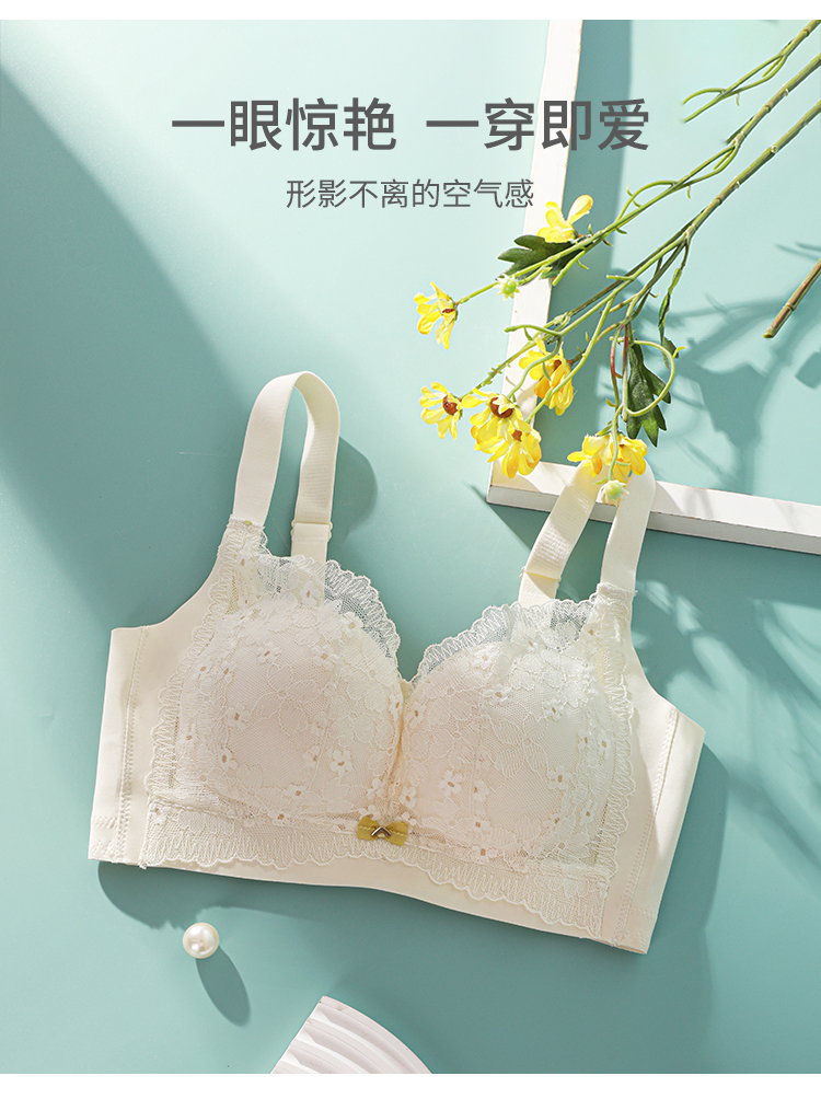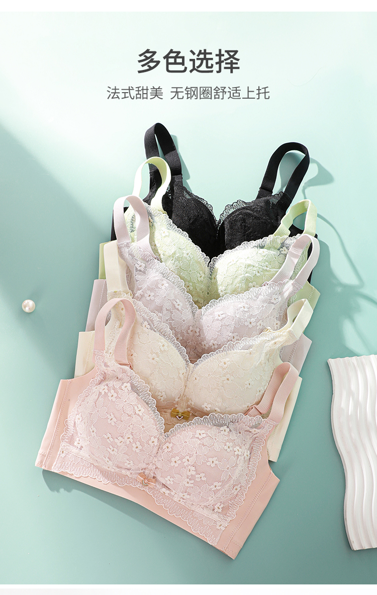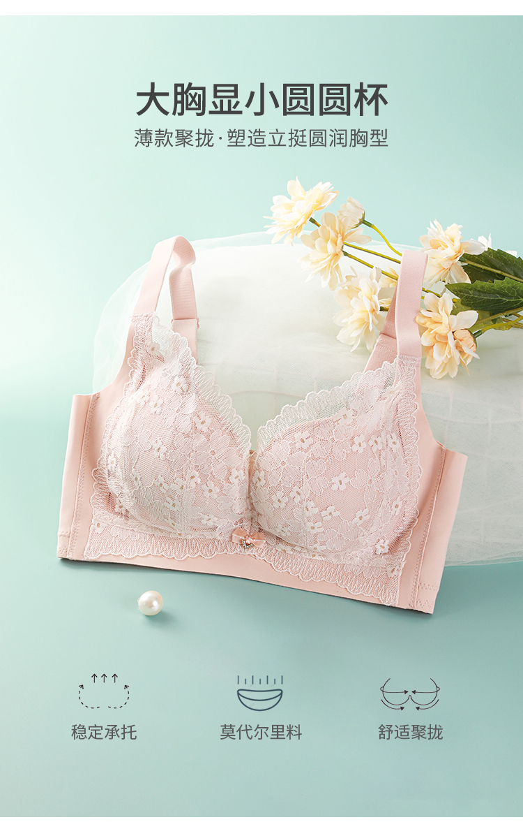 熳洁儿 内衣女大胸显小浪漫花卉蕾丝文胸轻薄透气舒适无钢圈上托防下垂23261512