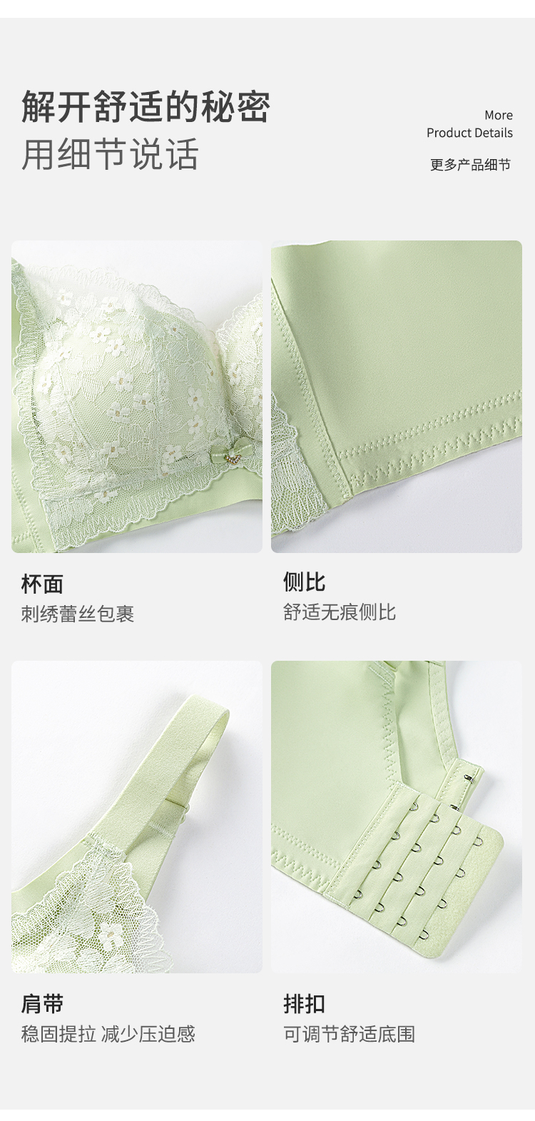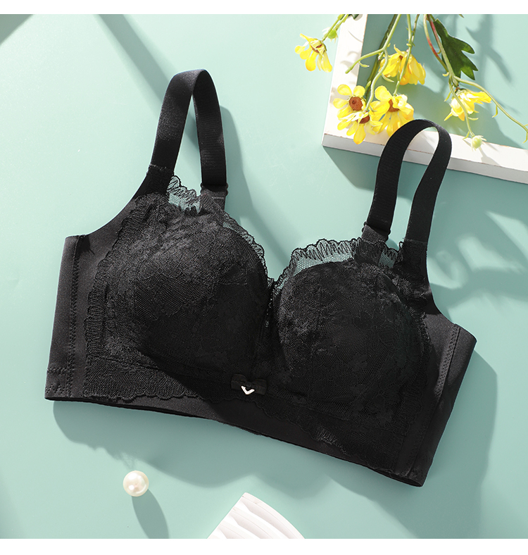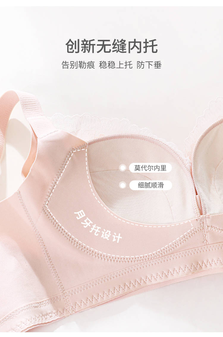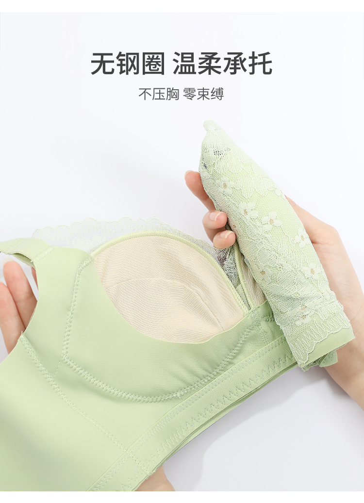 熳洁儿 内衣女大胸显小浪漫花卉蕾丝文胸轻薄透气舒适无钢圈上托防下垂23261512