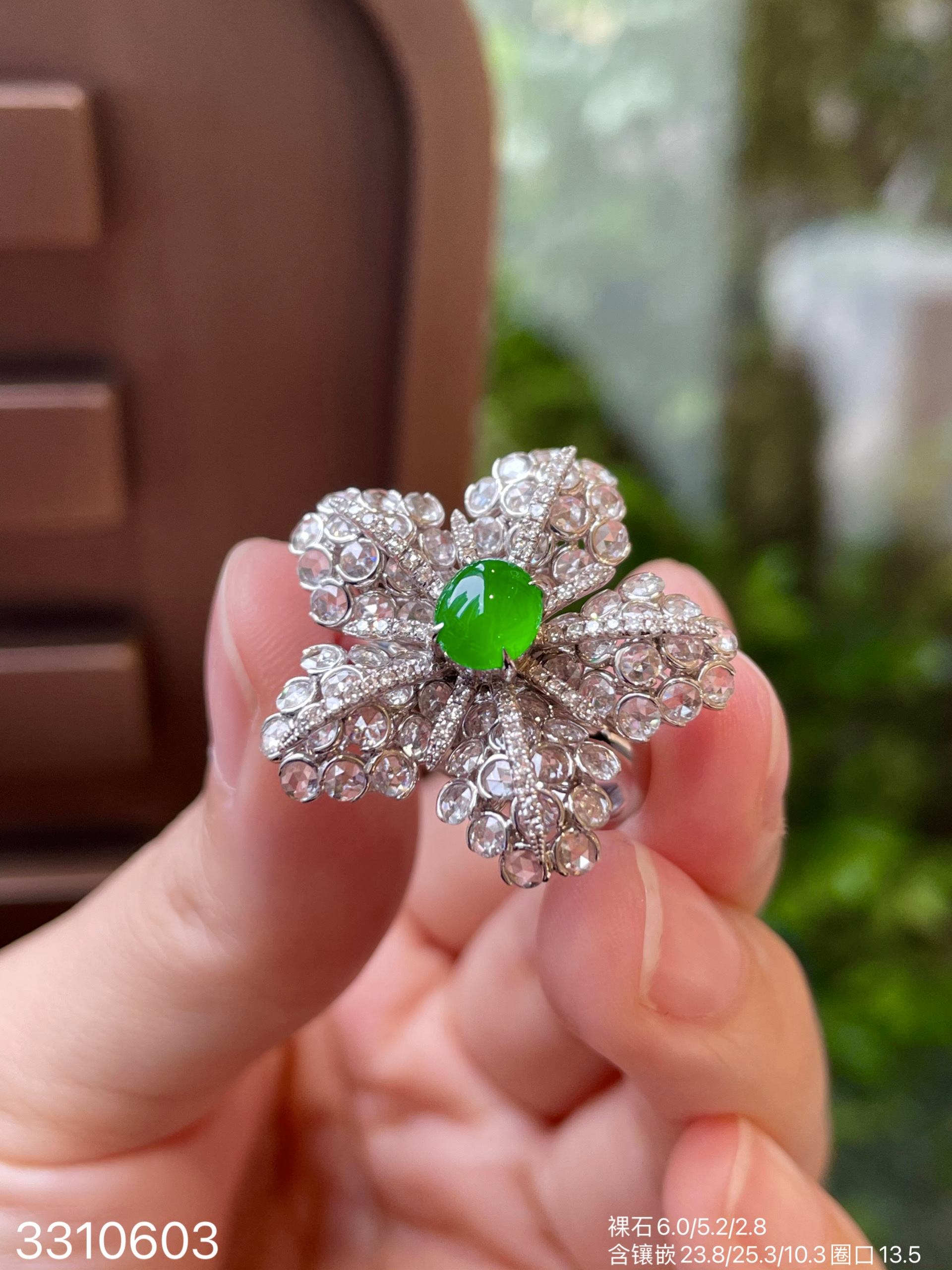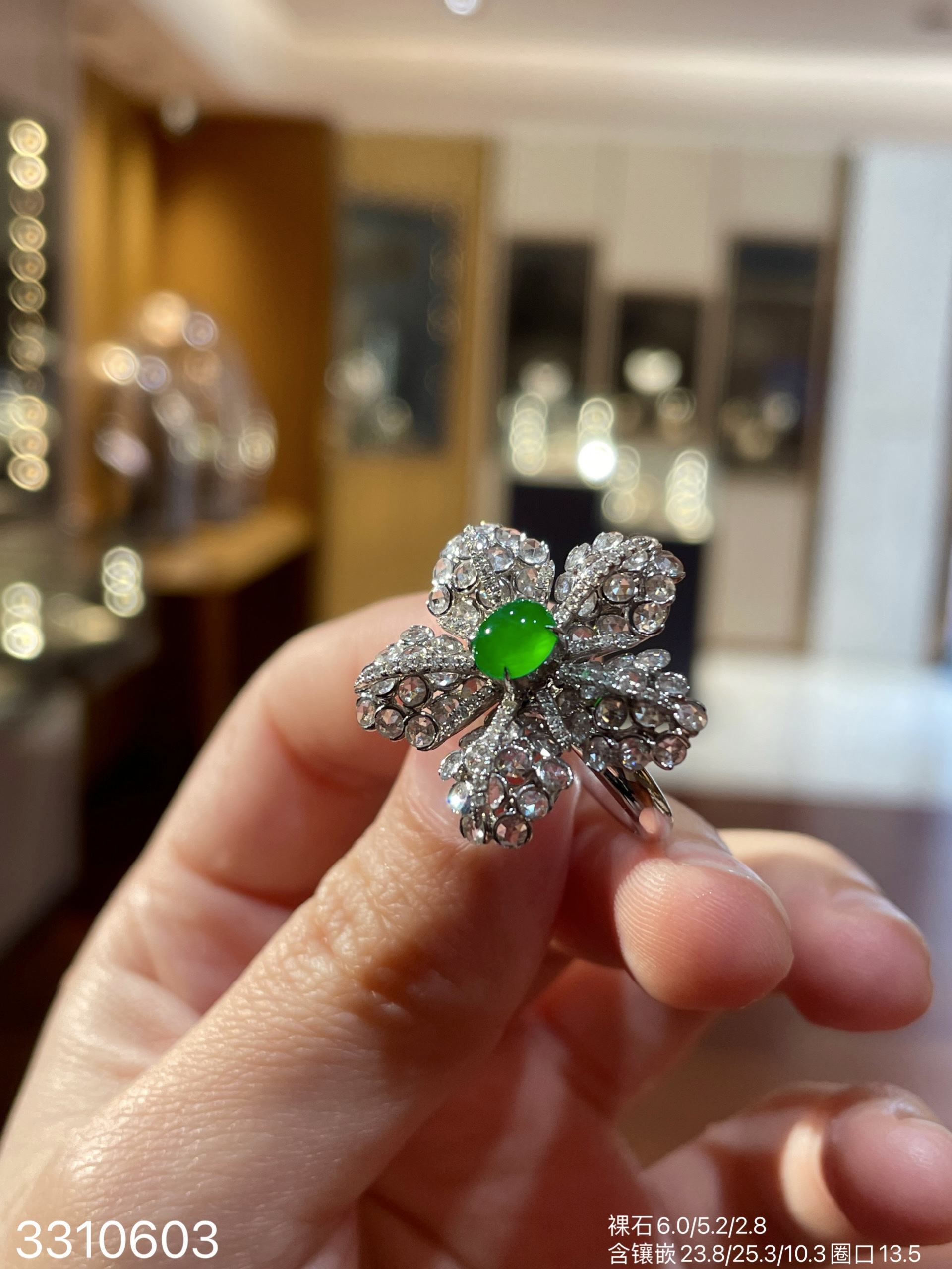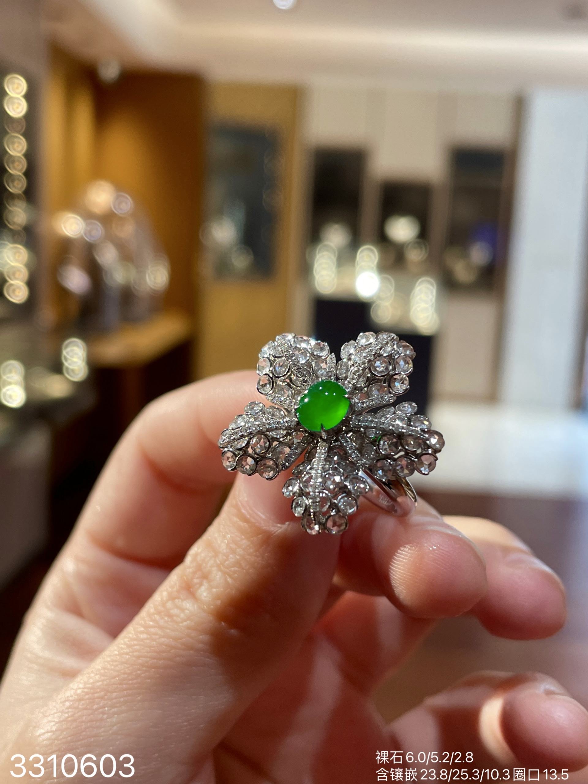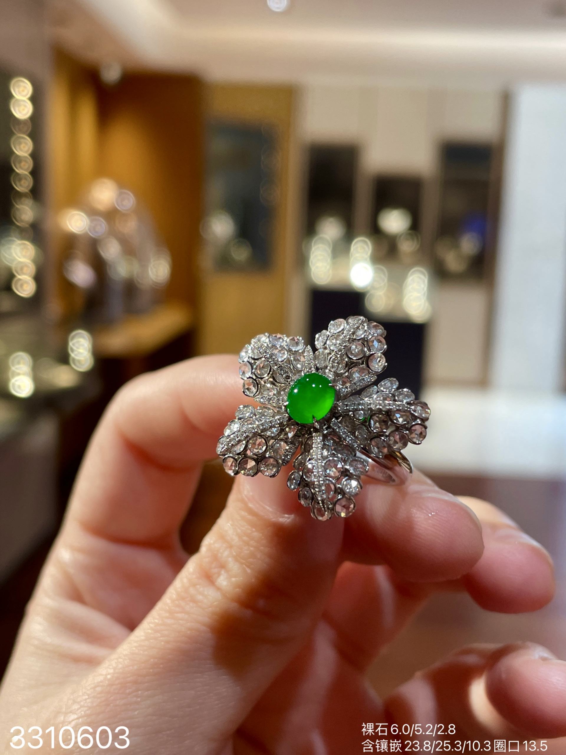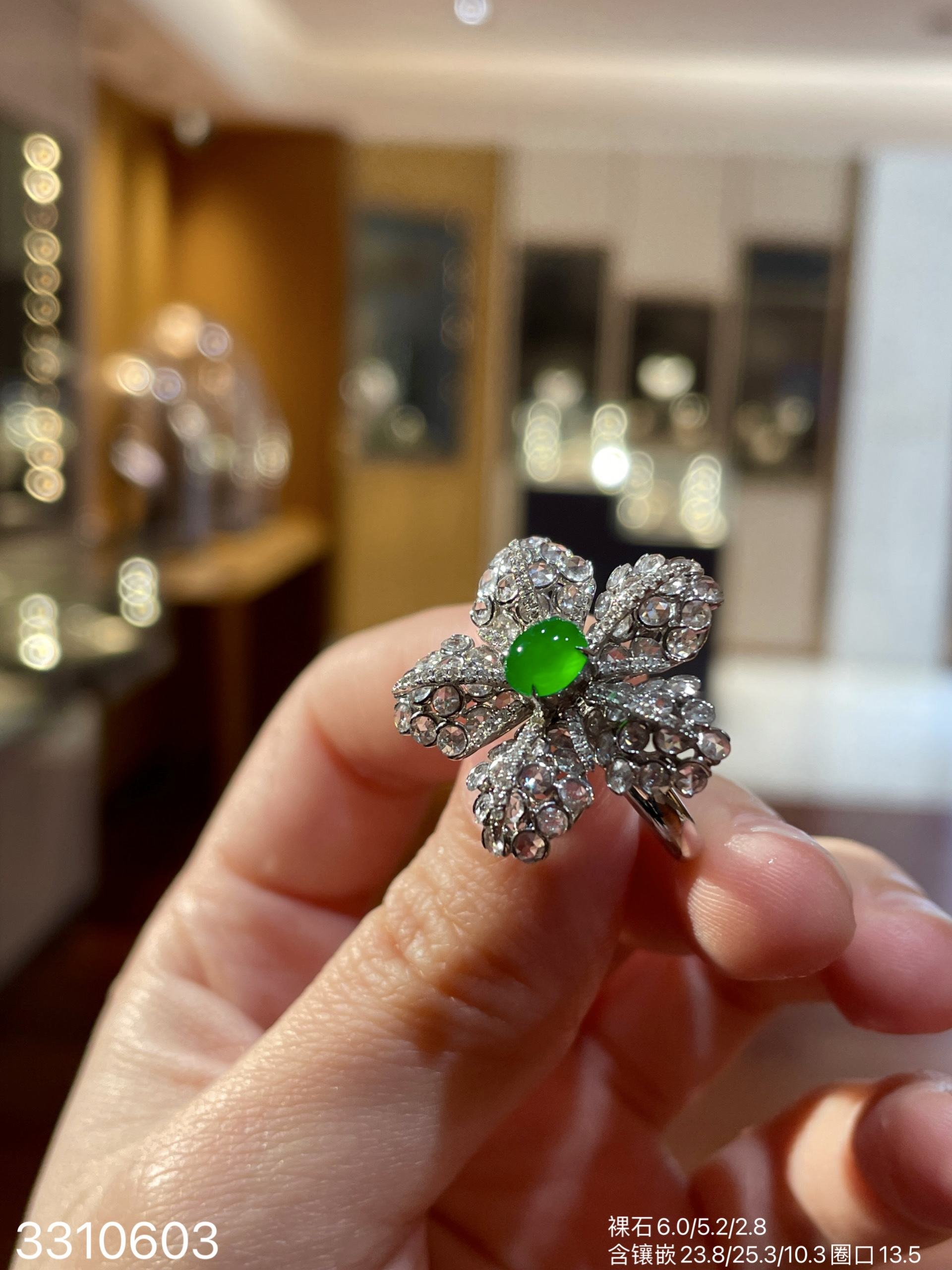 玻璃艳绿蛋面戒指32999【3310603】