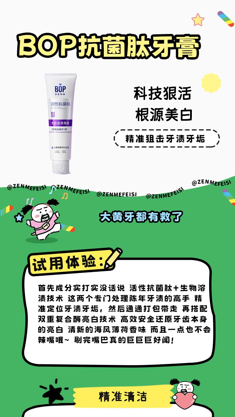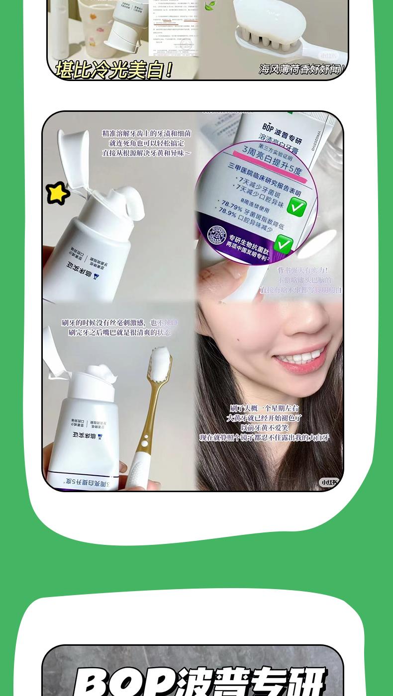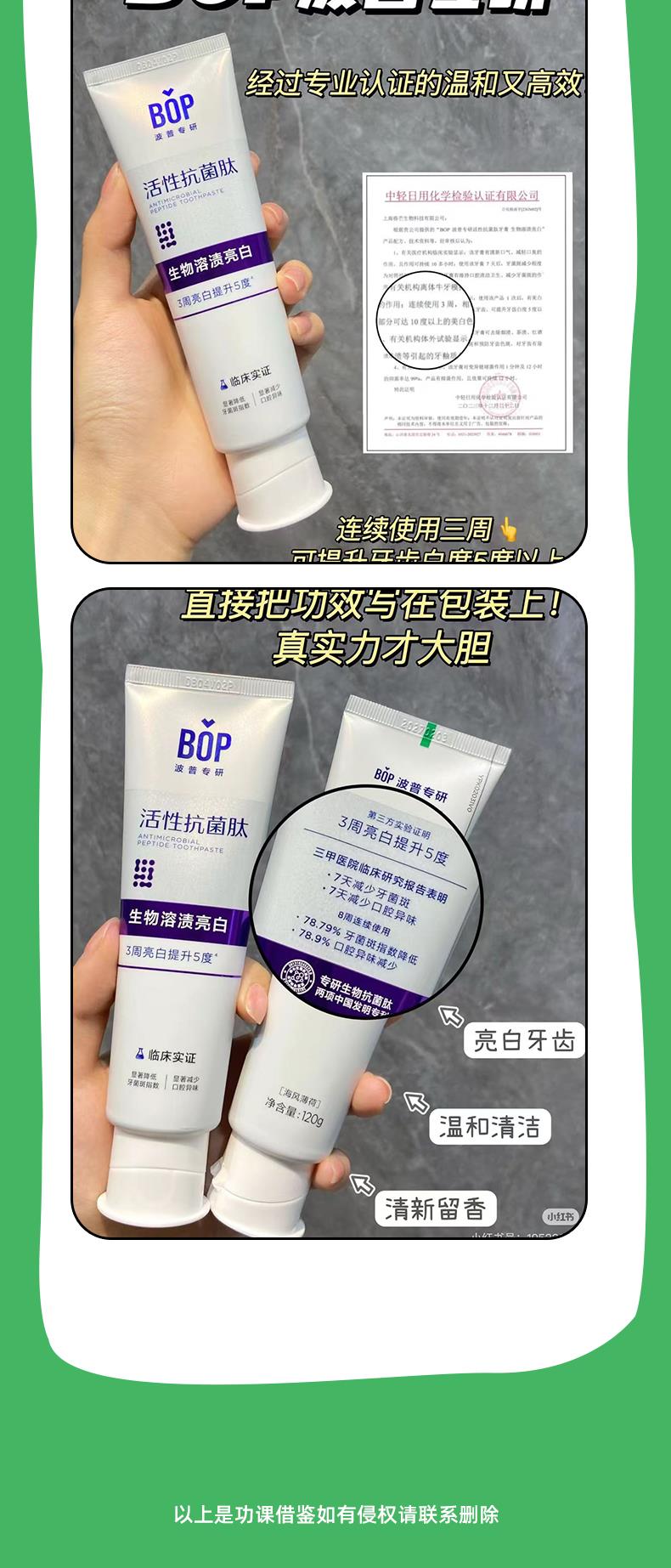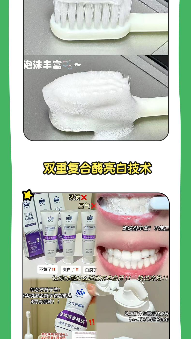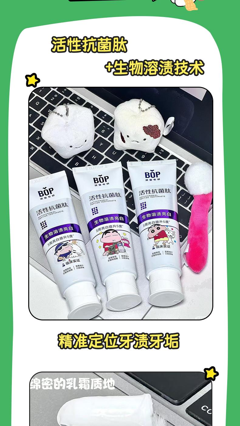 抖音同款任选二只69.9元 加量装 BOP波普专研活性抗菌肽牙膏多效生物溶解牙结石清新口气牙龈护理