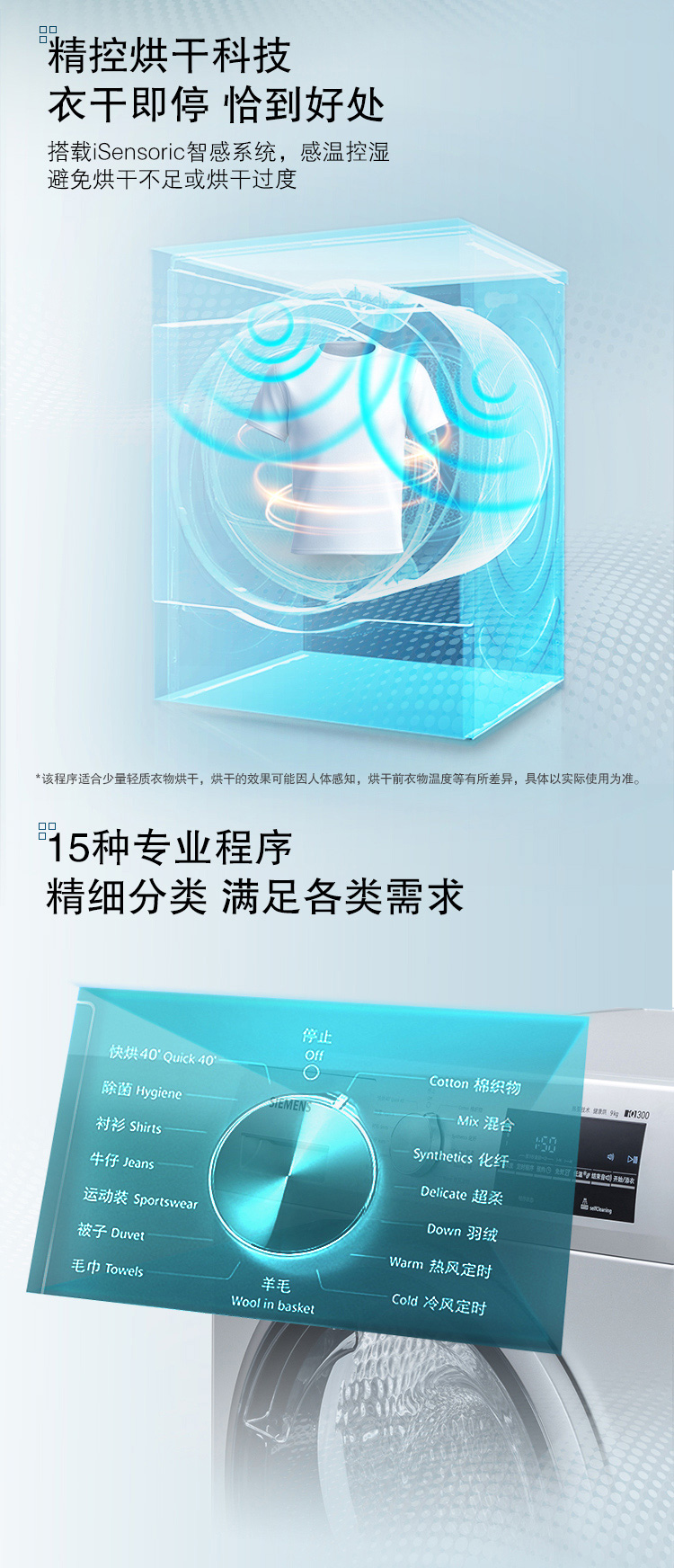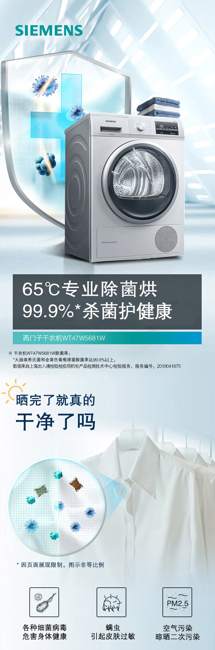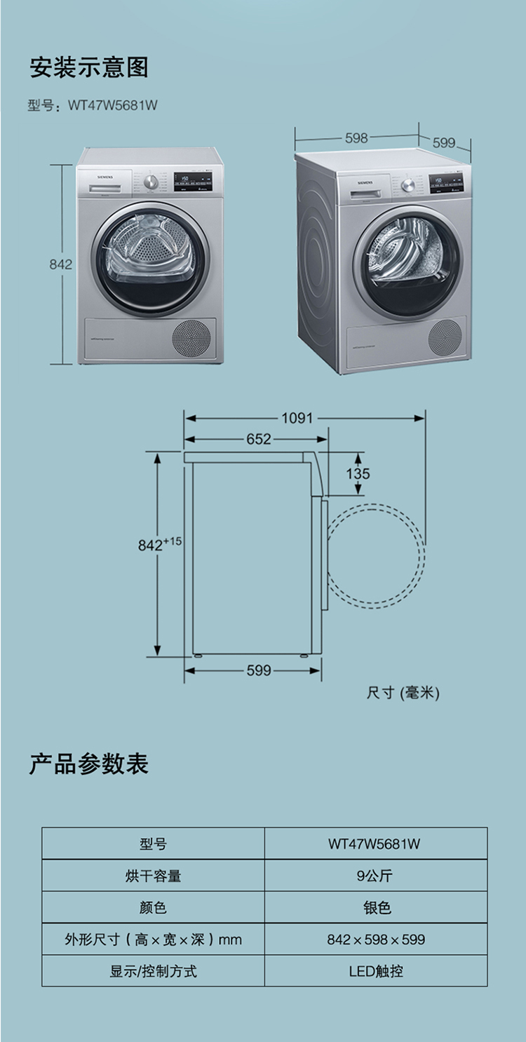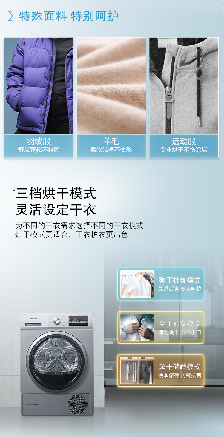 西门子(SIEMENS) 9公斤热泵烘干家用 欧洲进口干衣 低温柔烘均匀干衣 祛除宠物毛发WT47W5681W