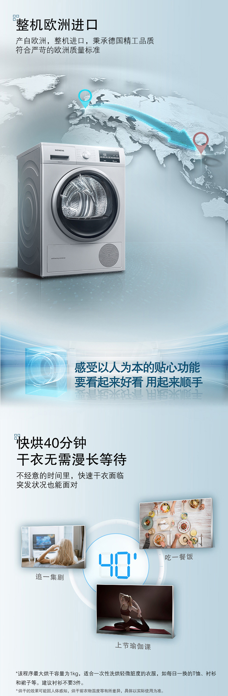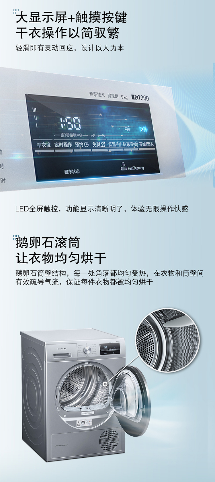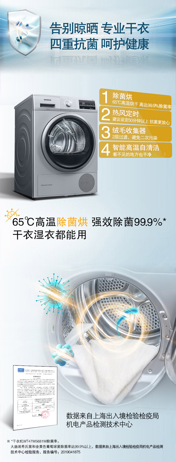 西门子(SIEMENS) 9公斤热泵烘干家用 欧洲进口干衣 低温柔烘均匀干衣 祛除宠物毛发WT47W5681W