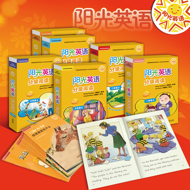 “阳光英语分级阅读”系列专为中小学生设计,在促进词汇、语法、阅读、写作等能力的同时,全面提升中小学生英语阅读素养。读物共228本,分为24个套装,从小学一年级到高三,为每个学期量身打造了阅读书目,并配备丰富的学习和教学资源。每个套装含9~10本读物,1本阅读指导手册。小学及初中段读物可使用“外研通”点读笔点读,声音文件到www.viaton.com.cn免费下载。系列另配有教师用书(由北京师范大学王蔷教授、陈则航教授主编),单独销售,可供课堂教学使用。