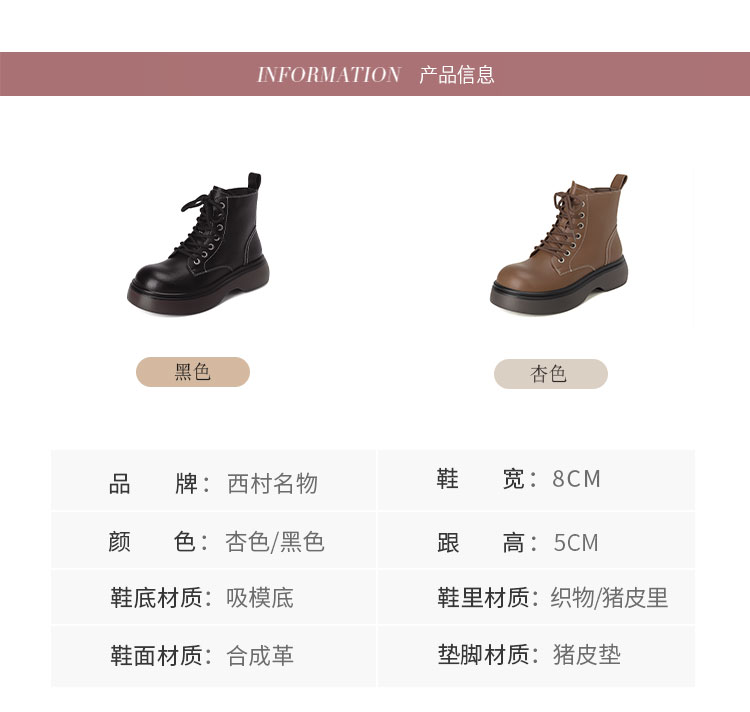 西村名物2023年新欧美风百搭工装靴子酷酷厚底马丁靴女短靴T23DS45901