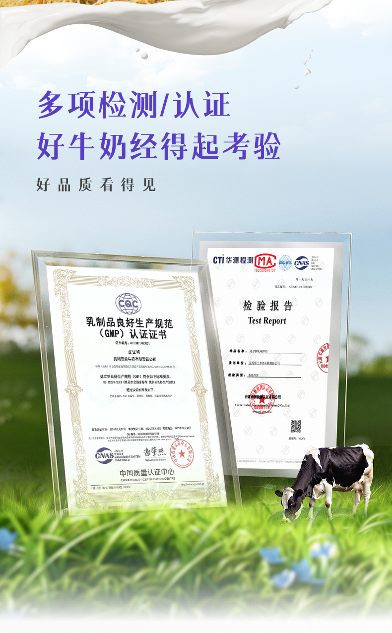 纯净奶源=澳洲荷斯坦奶牛+进口牧草+七彩云南高原生态牧场