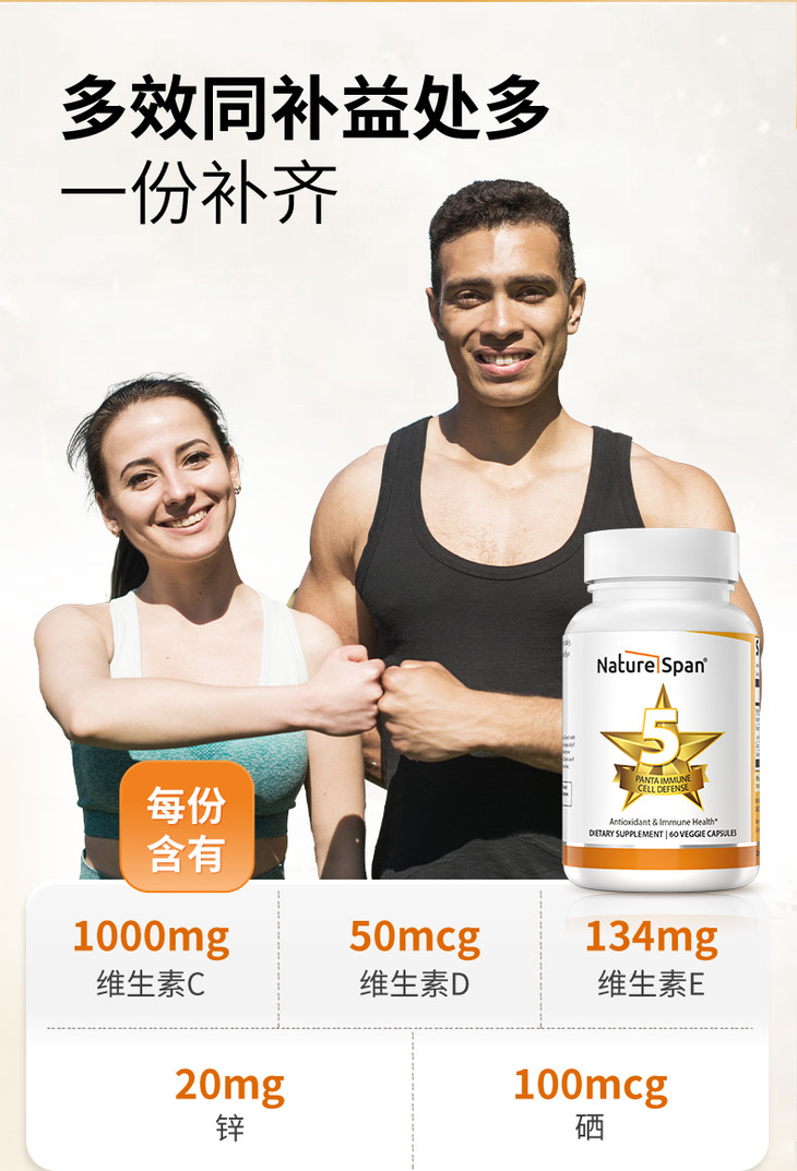 金五星保卫五重免疫力配方家庭常备60粒 复合维生素 NATURESPAN倍能适