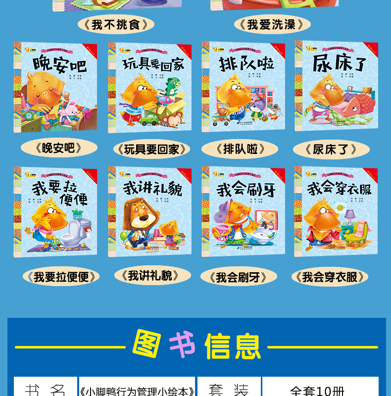 小脚鸭行为管理小绘本一我要拉便便等套装全10册3-6岁儿童睡前故事书幼儿好习惯启蒙图画书宝宝早教书幼儿园小班中班大班图书籍