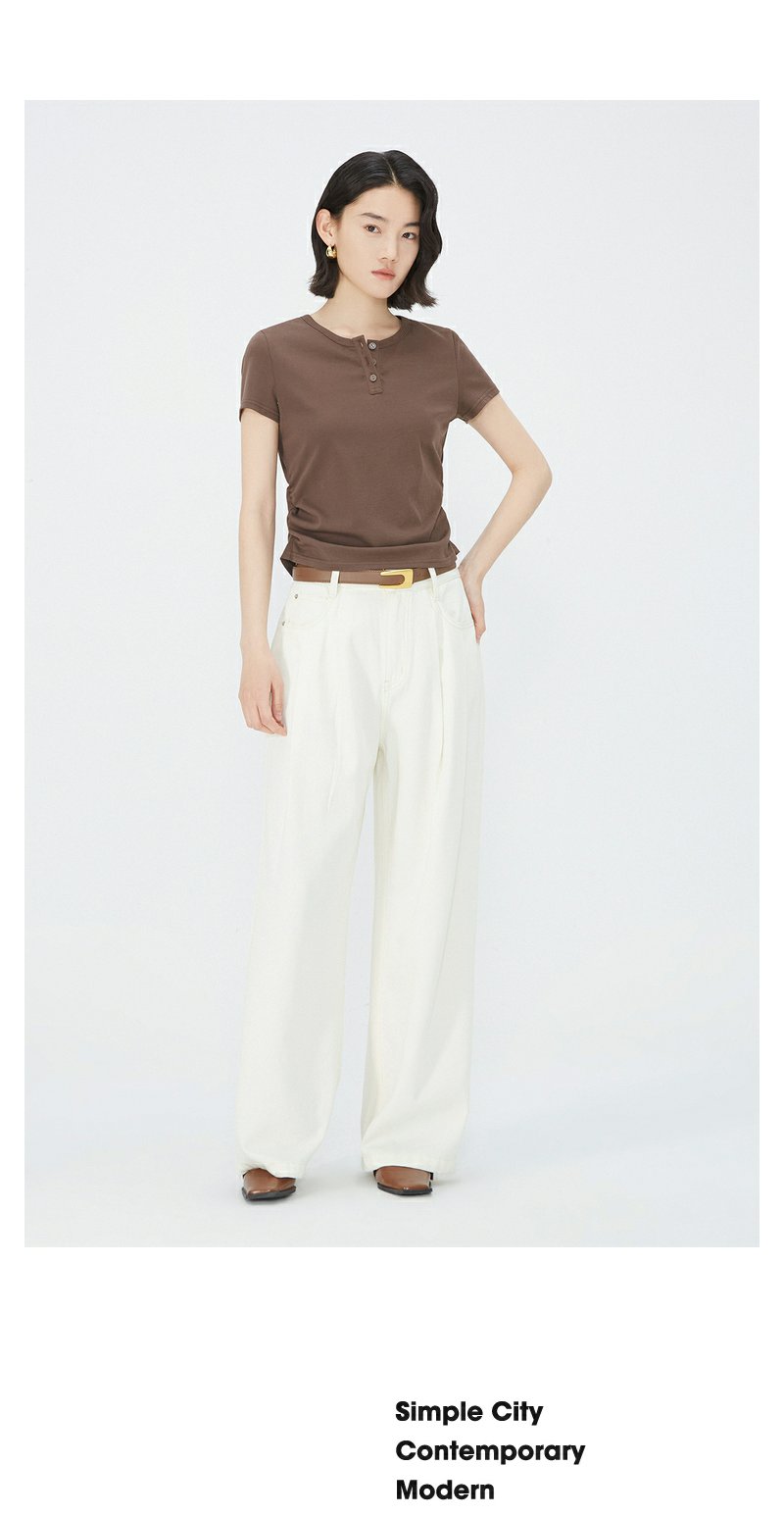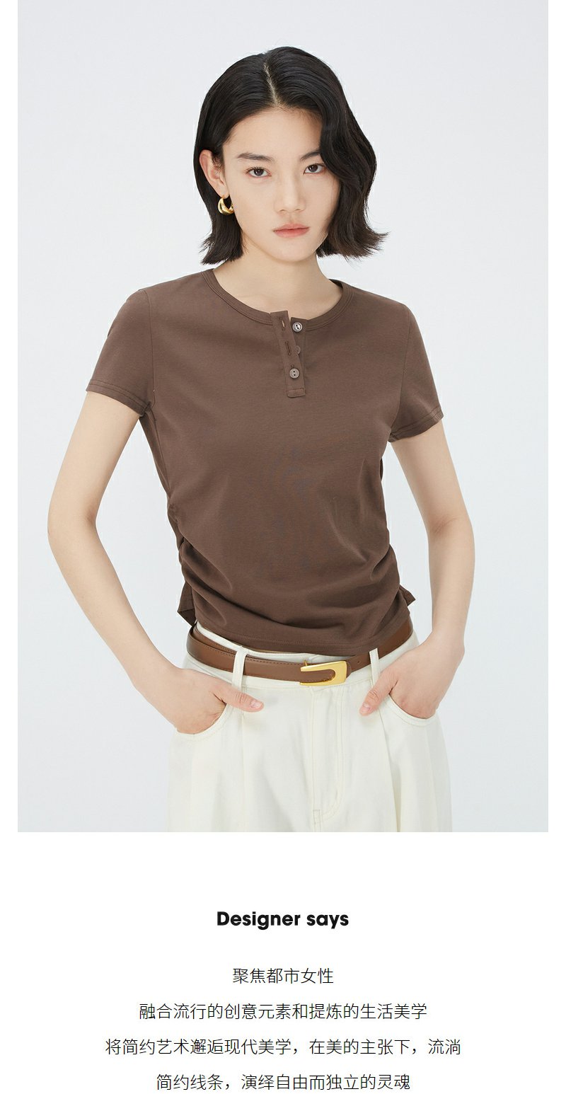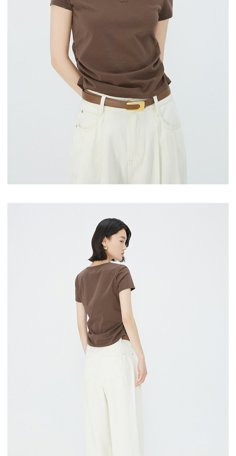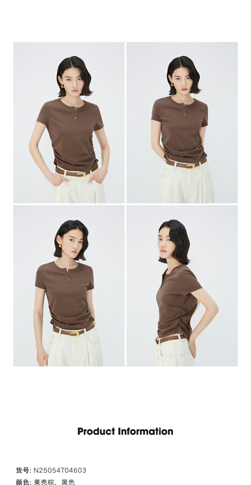 NEELLY纳俪商场同款夏新款设计感短袖正肩T恤女极简修身显瘦上衣N25054T04603