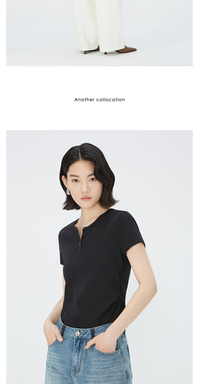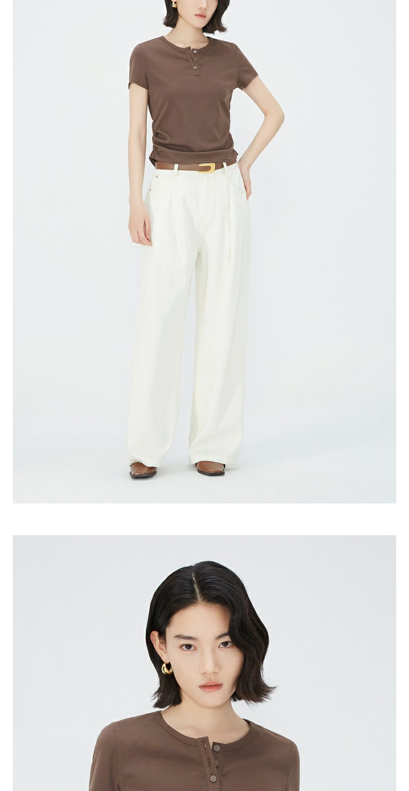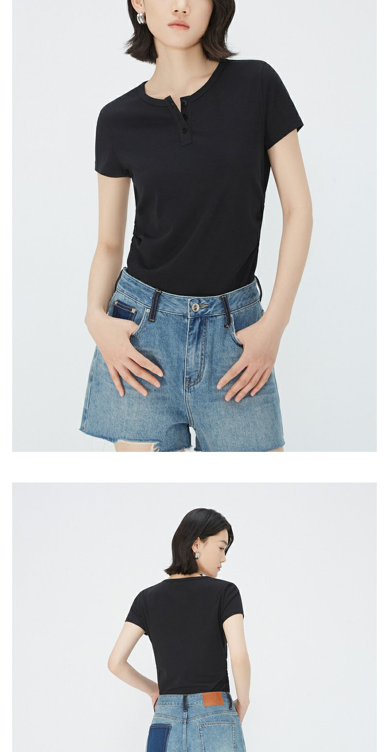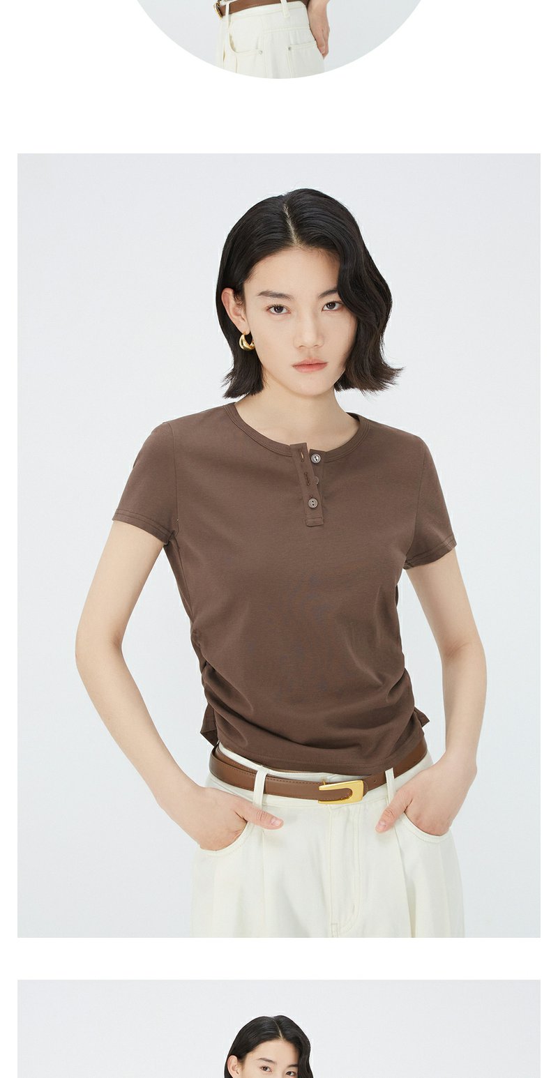 NEELLY纳俪商场同款夏新款设计感短袖正肩T恤女极简修身显瘦上衣N25054T04603