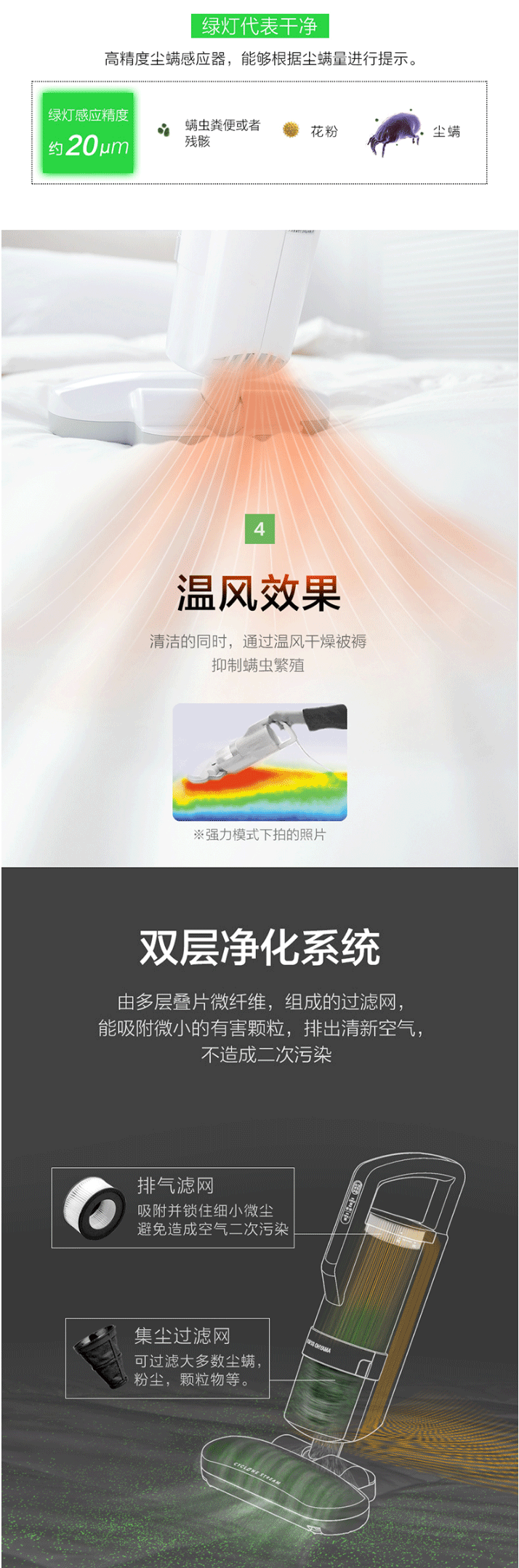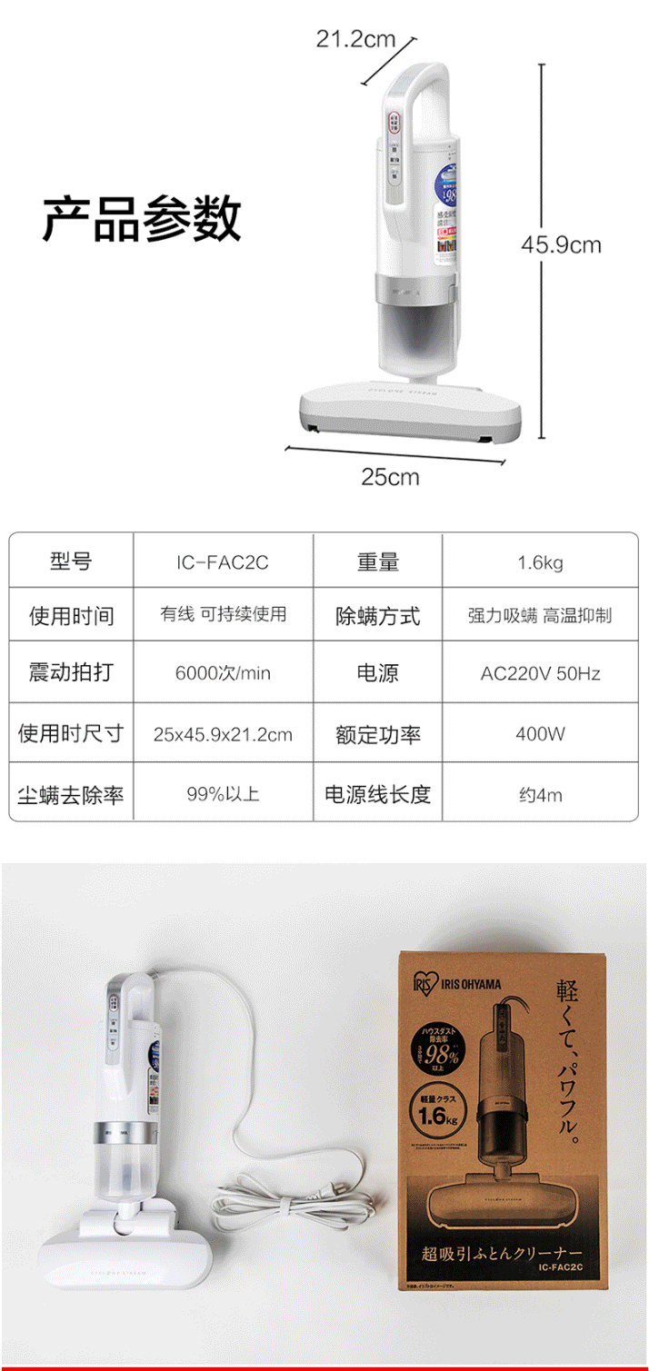 日本IRIS爱丽思除螨仪家用床上除尘手持式床铺螨虫吸尘器爱丽丝