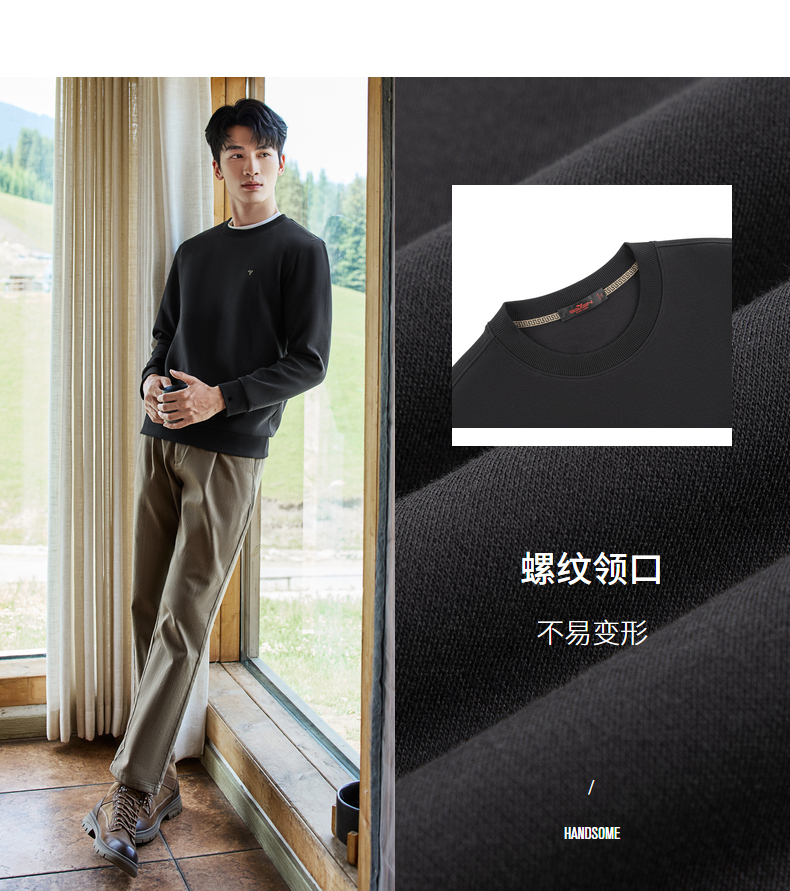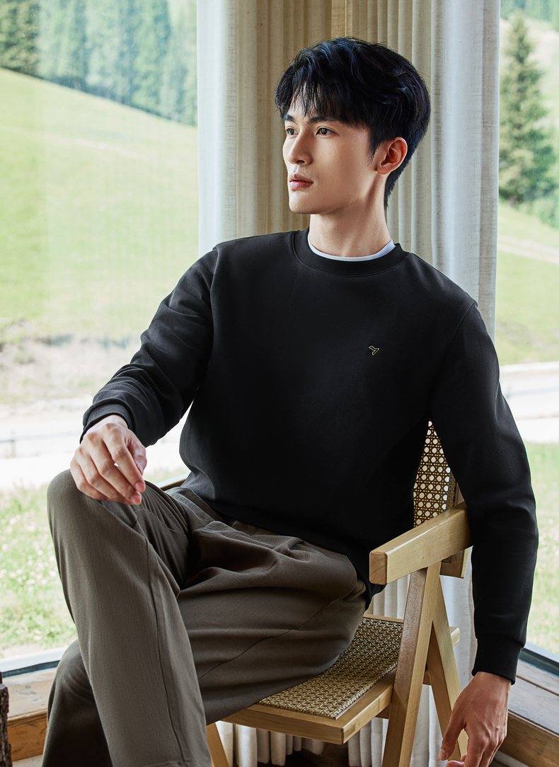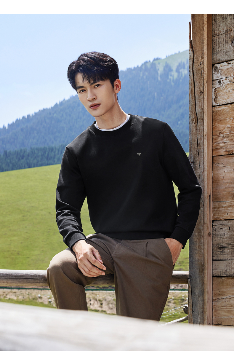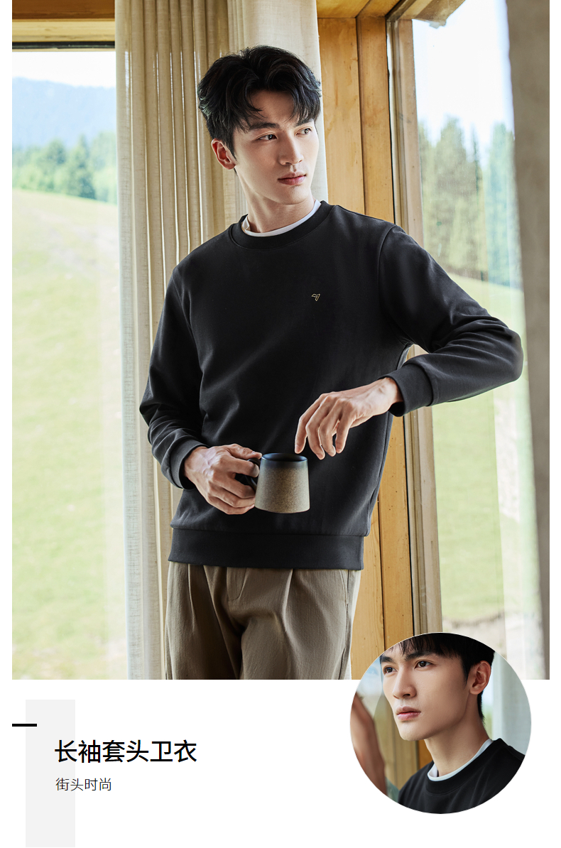 【新疆棉】柒牌男士圆领卫衣秋季新款时尚休闲百搭套头长袖上衣129W70180