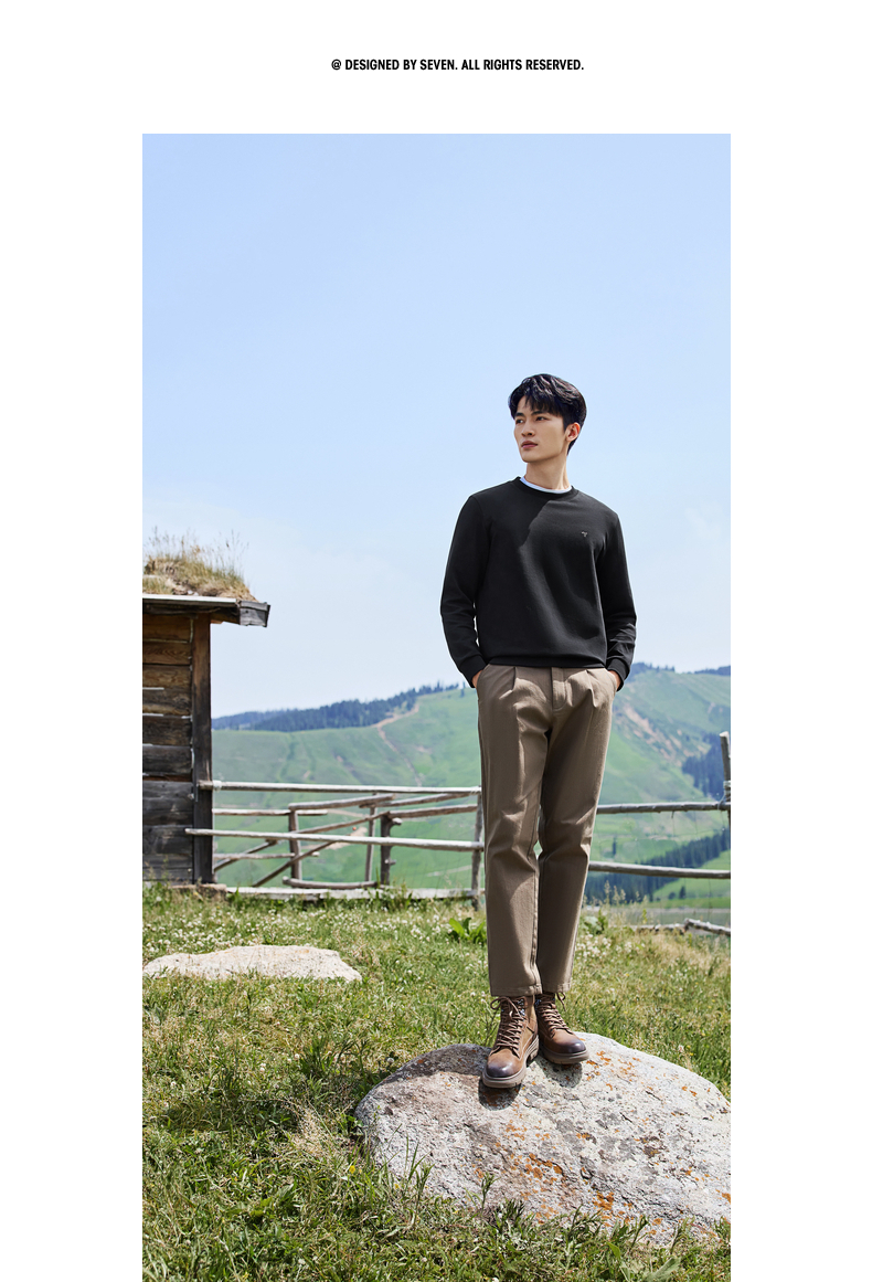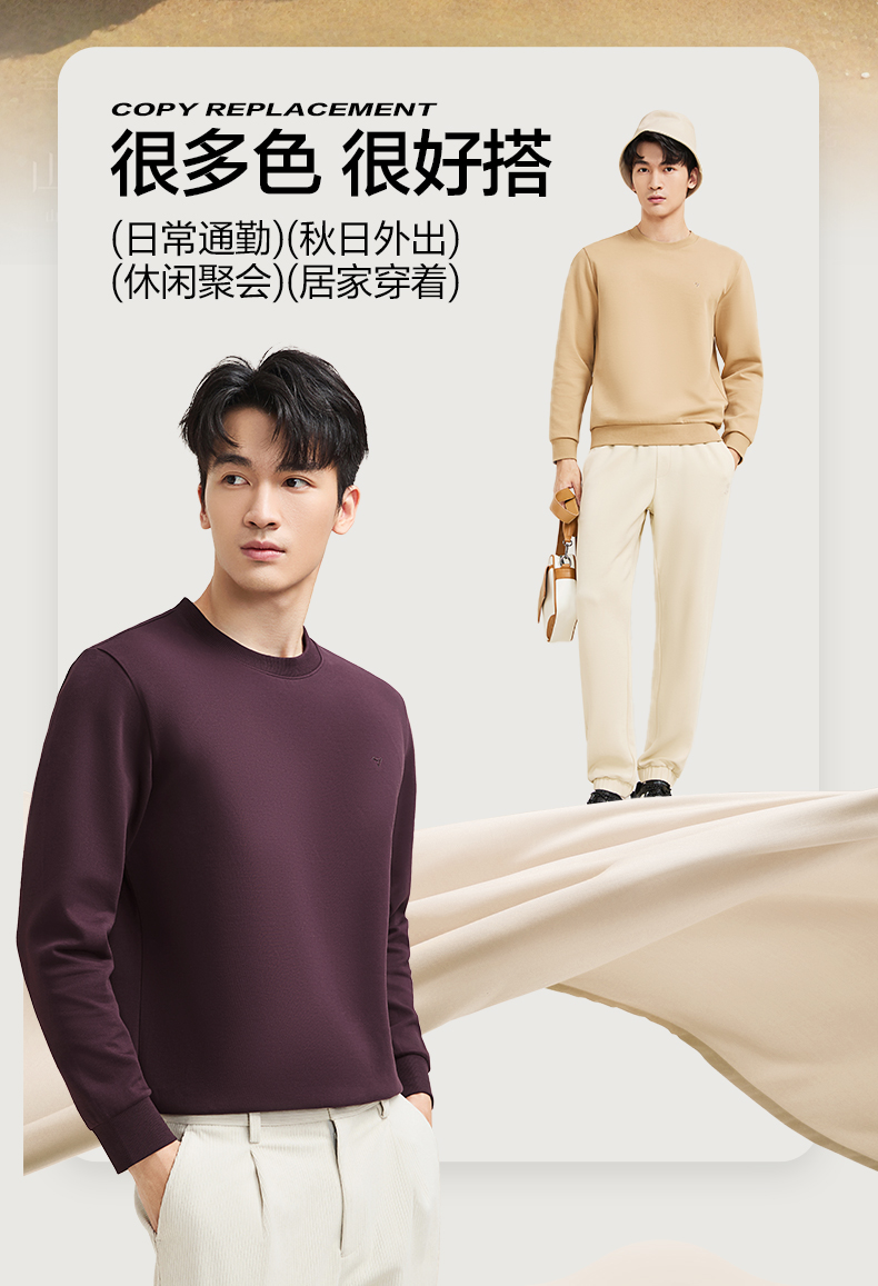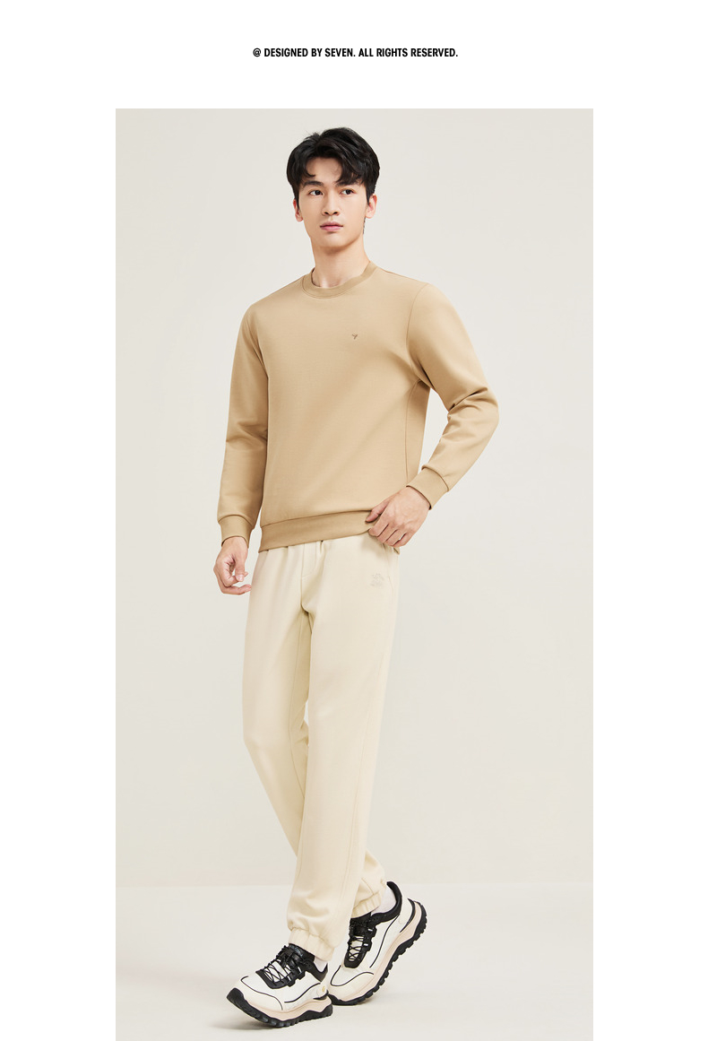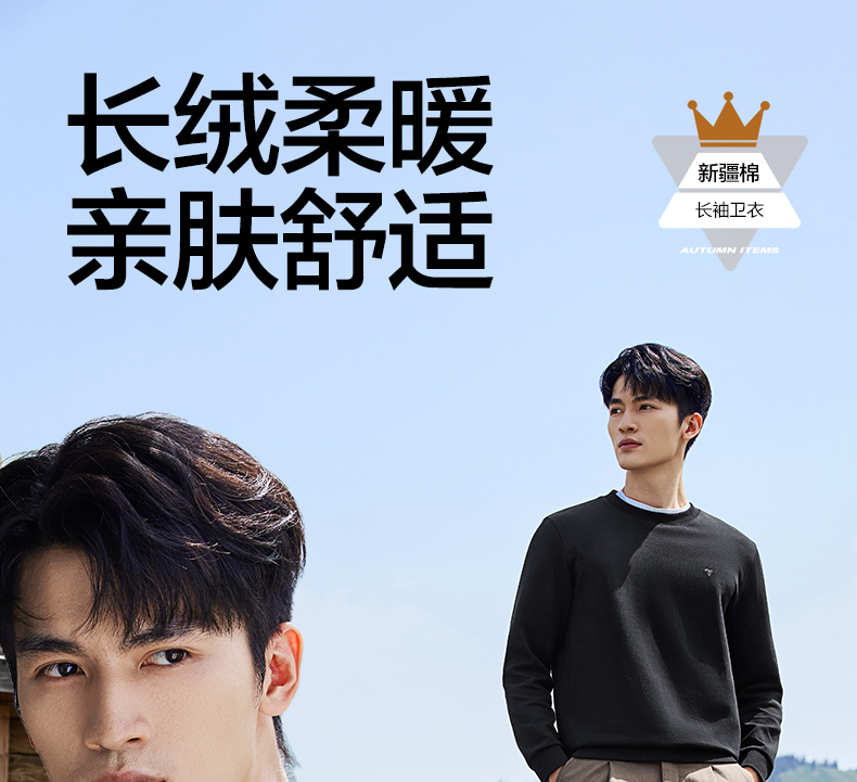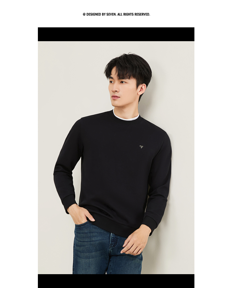 【新疆棉】柒牌男士圆领卫衣秋季新款时尚休闲百搭套头长袖上衣129W70180