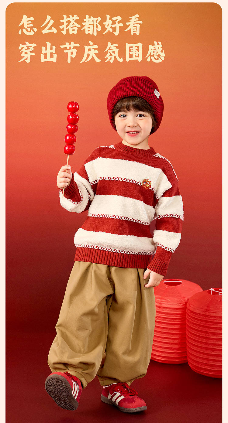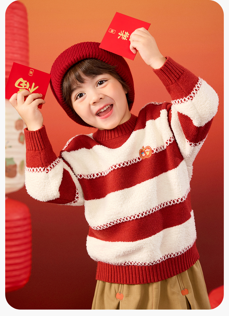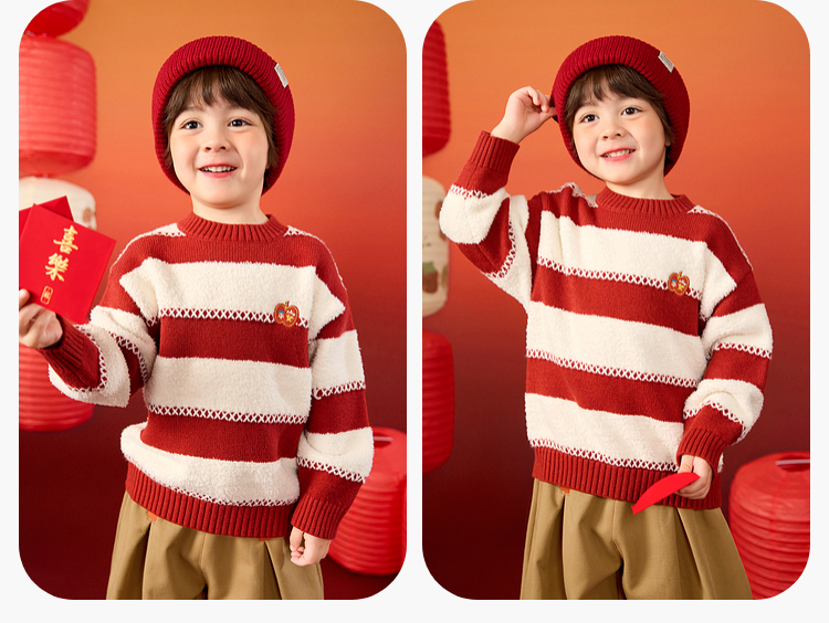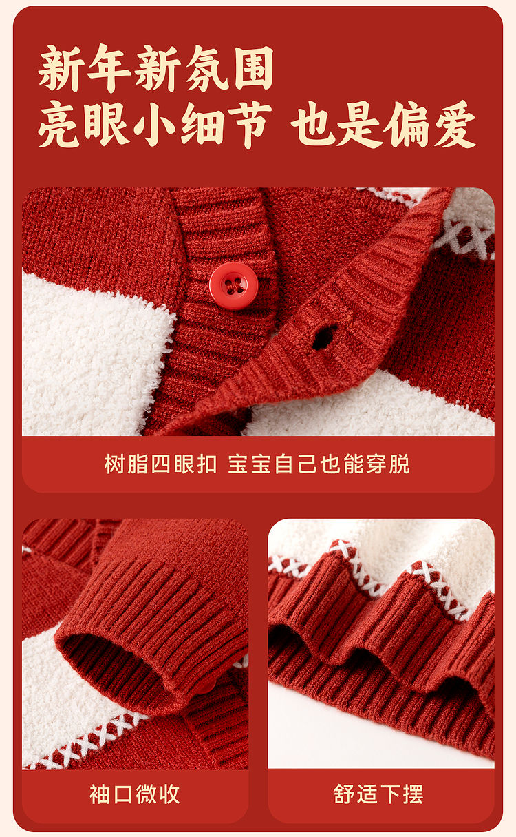 嘟嘟家儿童唐装毛衣宝宝针织衫上衣喜庆拜年服童装